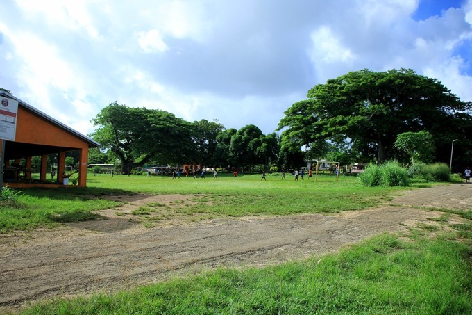 结束观察小螃蟹后在谷歌找了一个小教堂 想去看看 途中经过一个村庄准确来说应该类似 中国 某个城市的社区 因为这里就是瓦国的首都中心区域啊 一群青少年在踢足球 走近后仔细观察一下 竟然也是光脚你懂得瞬间又是感慨万分 真想上去玩一会 天然草坪大空地 算是一个简易的足球场了吧