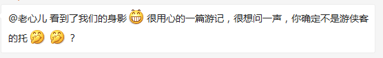 个人公众号这篇发出不到半天后,已经有10多个朋友要去了游侠客这个线路,不加个精华、转发下好像有点怪哟,哈哈~~