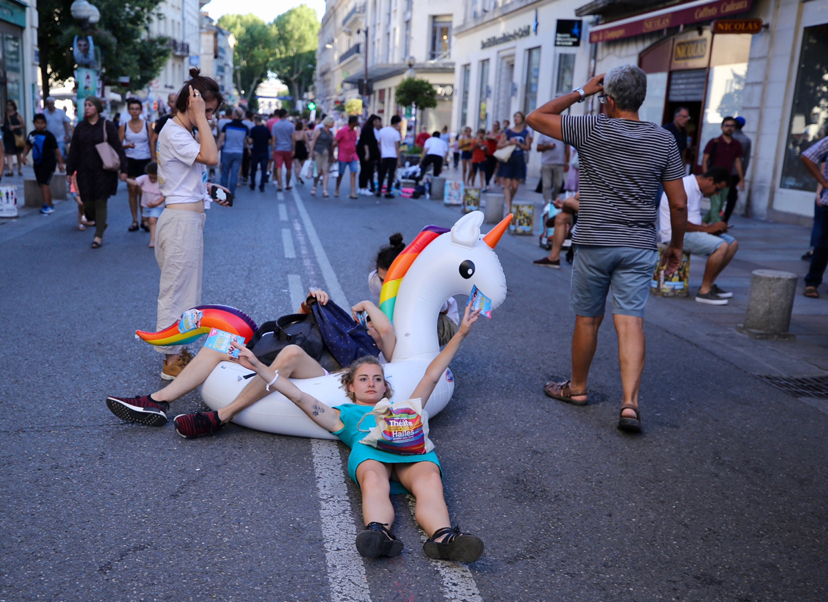 当天晚上住在阿维尼翁古城,正巧碰上一年一度的阿维尼翁戏剧节。赚大了,古城里热闹非凡,墙壁上到处张贴着各种海报,上演着世界各地的戏剧,包括我们中国的《茶馆》。
