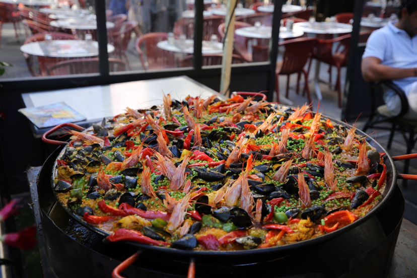 一个人怕吃不完,只点了一碗汤、一杯酒和最小的一个拼盘,但是端上来一看,吓,也很大一盆了,里面有生蚝、青口和各种贝类,明虾和一大堆小海虾,吃到撑。