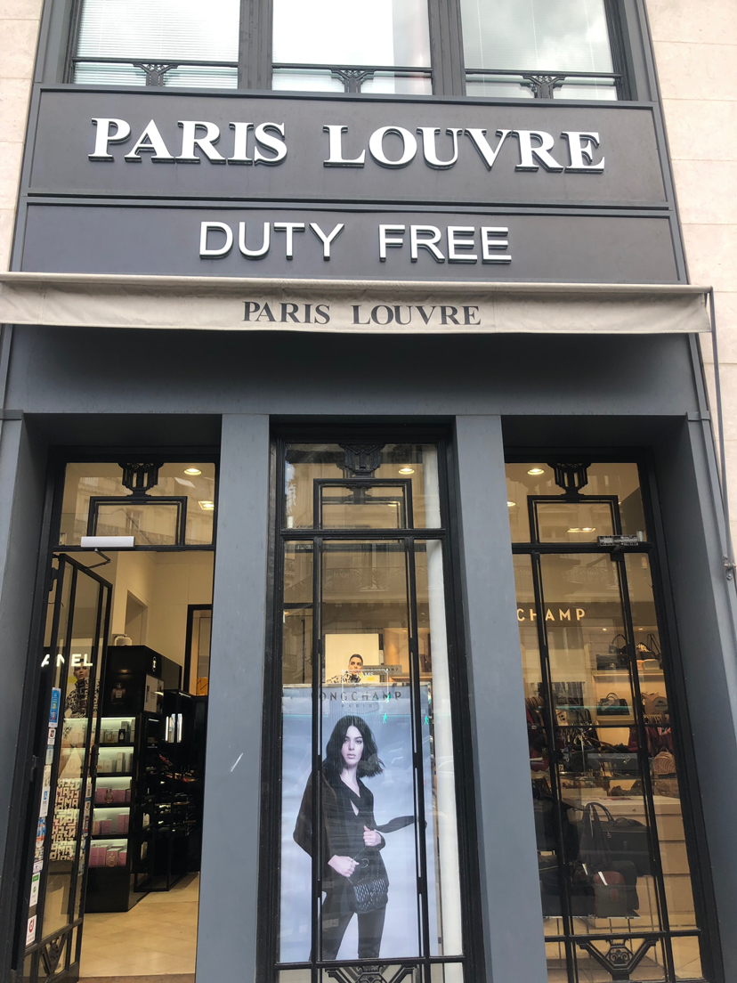 网上查到酒店附近卢浮宫旁边就有个免税店,去逛了一下,只有两层,上层化妆品,下层手表箱包。大众点评上说有七五折优惠券,当场退税。于是给身边的朋友、同事们买了一堆护肤品做礼物。
