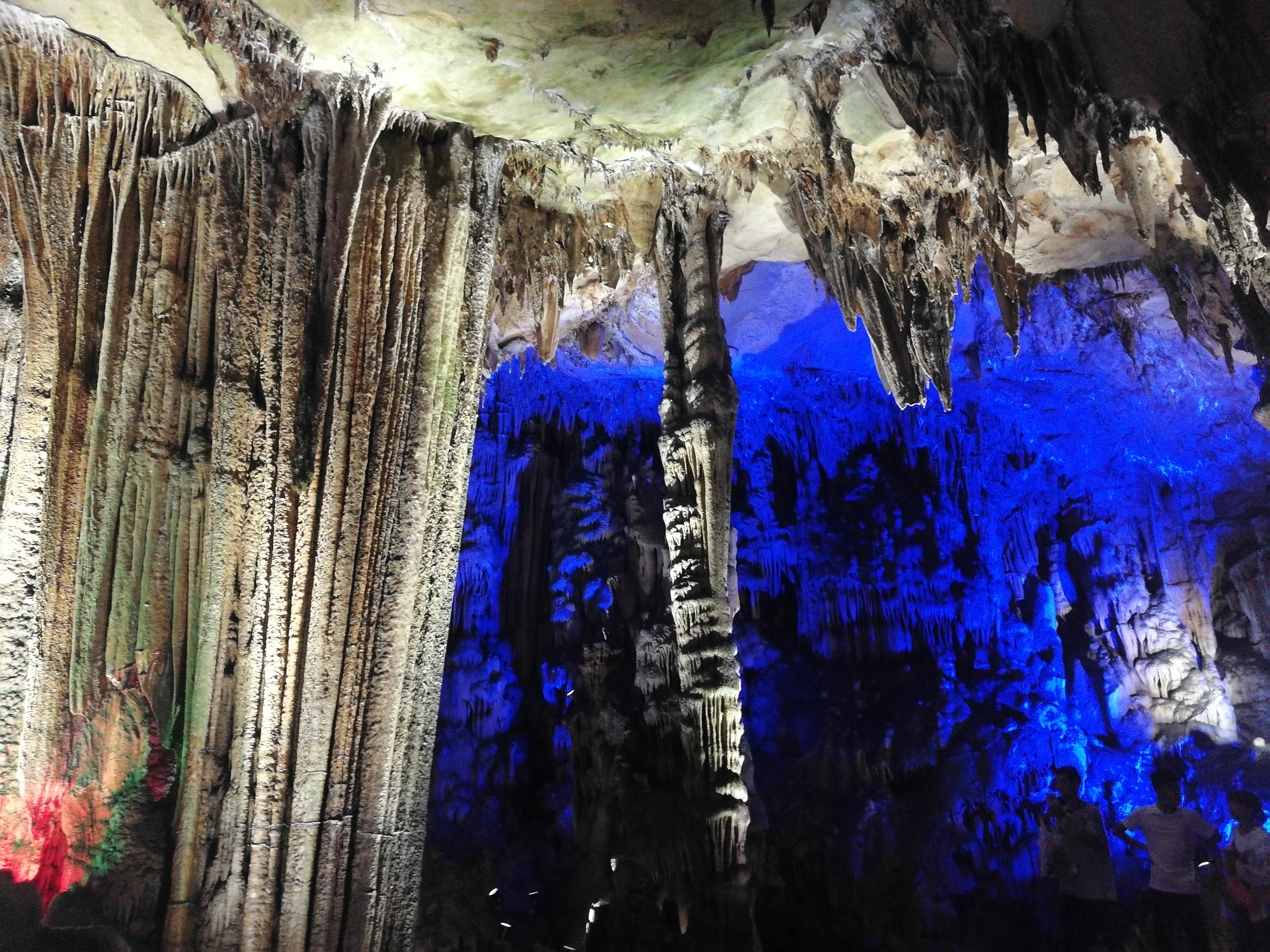乘坐游船进入溶洞,刚入洞口就有徐徐凉风,瞬间感受到清凉,洞口还有蝙蝠,生态很好