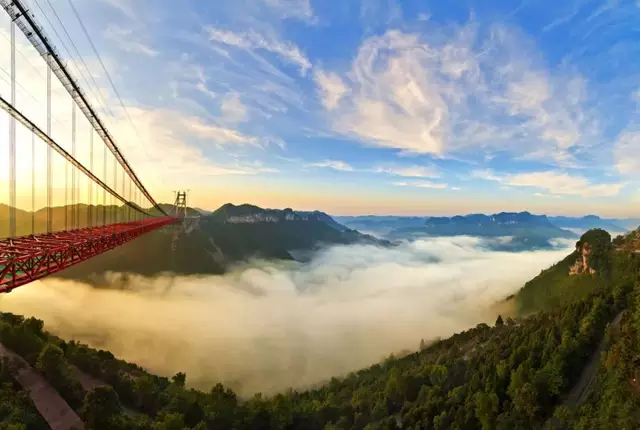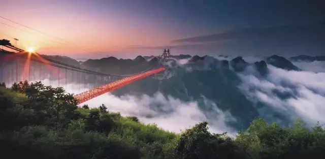 前往“主跨世界第三亚洲第一”、“创四项世界记录”的矮寨大桥观景平台近距离拍摄世界第一跨峡谷大桥雄伟、壮观,远观公路奇观,行走在矮寨大峡谷之中,从两百多米高处飞流直下,乃奇景之一。两边山峦挺拔,郁郁葱葱;大自然鬼斧神工雕凿了许多断崖、石壁、峰林。周围云气缭绕,为神秘的湘西更添一份魅力!