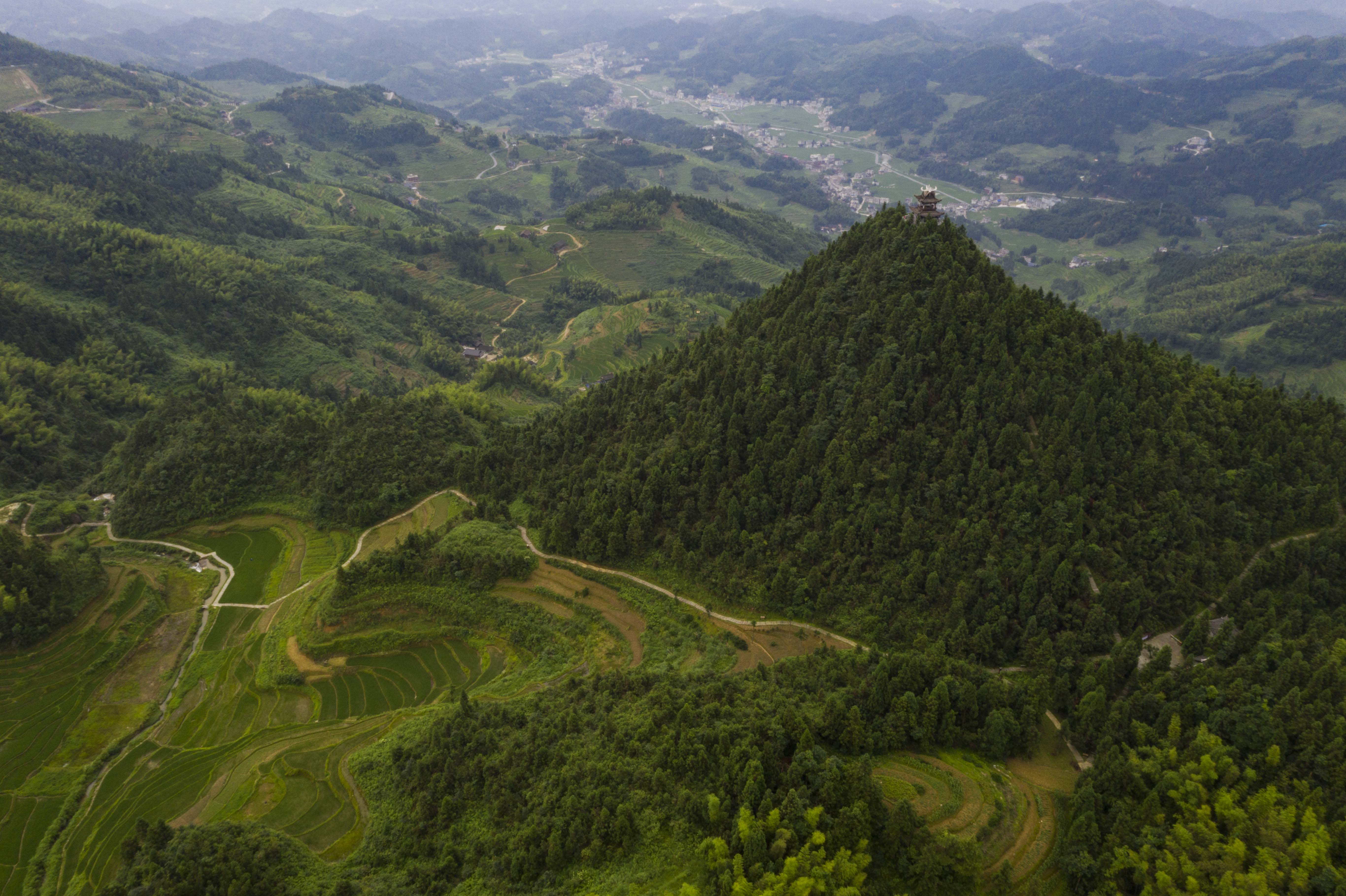 参天古树、层层梯田、野性瀑布、奇石崖壁,以及掩映于崖旁树影的民居