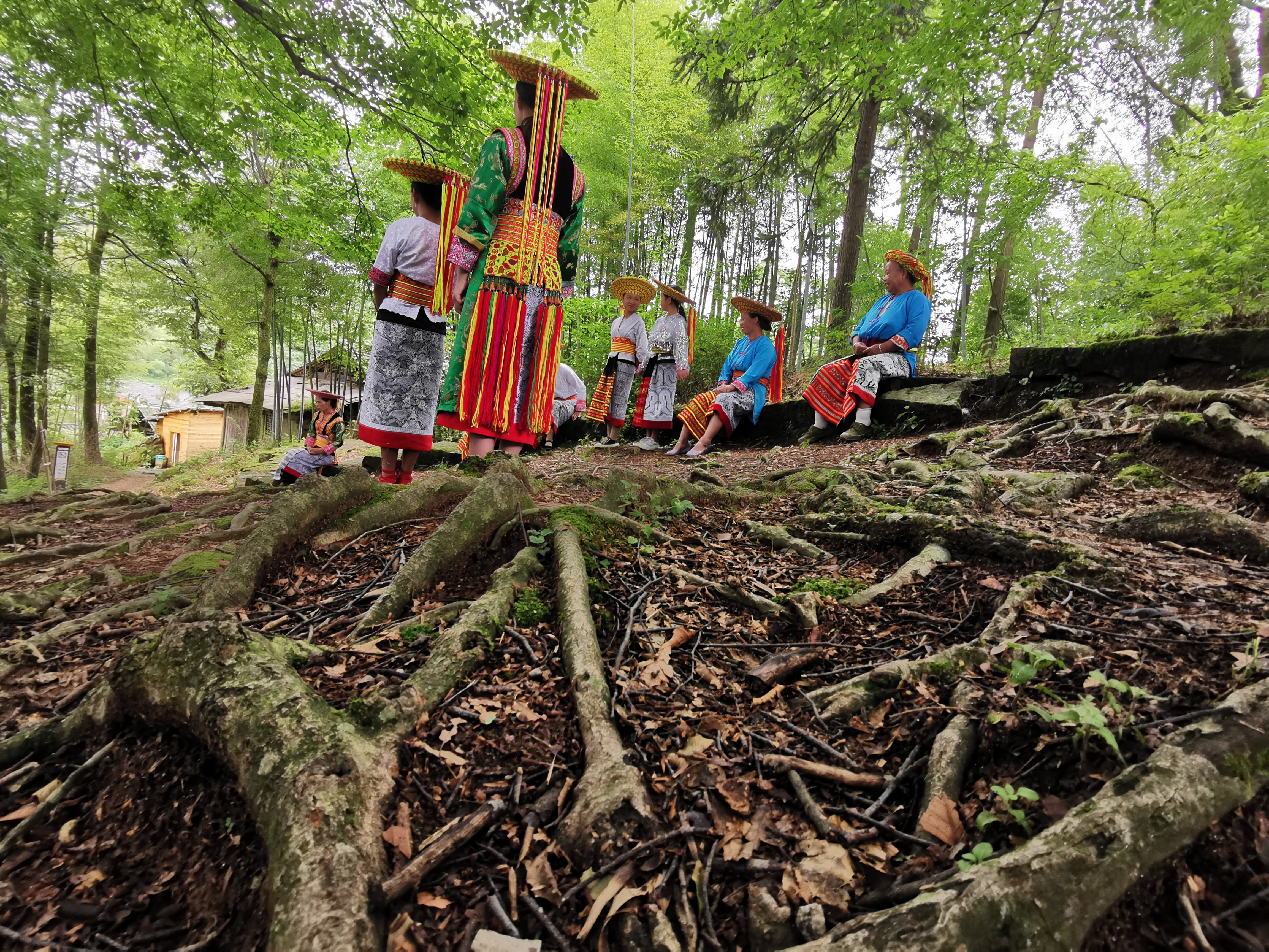 据东汉应劭《风俗通义》记载,瑶族祖先“积织木皮,染以草实,好五色衣服”。花瑶,一支奉“黄瓜”为生灵的古老民族。仅六千余众。至今承袭着他们先祖代代相传的古老遗风。