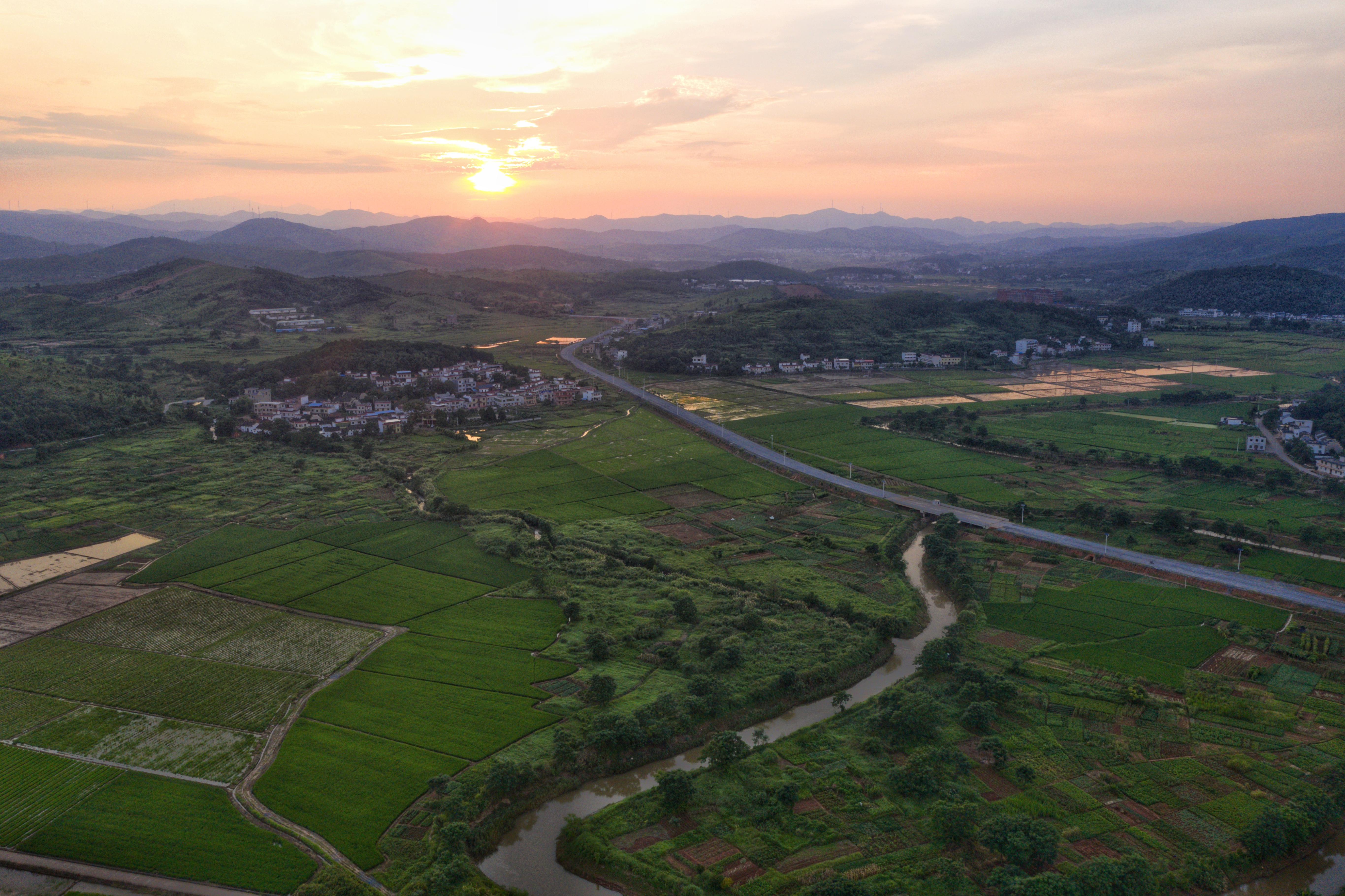 顺八角寨索道而下,步行半个小时,便来到夫夷江边。落日的余晖洒在平静如镜的江面上,清风徐来、波光潋滟,落霞与孤鹜齐飞,秋水共长天一色。