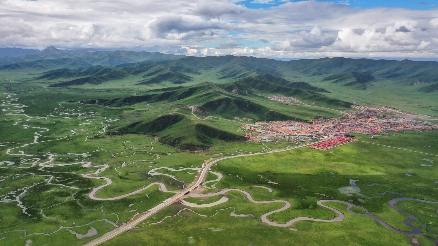 第八站:唐克黄河九曲第一湾;九曲黄河第一湾位于四川省阿坝藏族羌族自治州若尔盖县唐克镇,此处是四川、青海、甘肃三省交界处。黄河缓缓流过唐克城区,从若尔盖驱车大约61公里,经过唐克镇,唐克镇以北9公里到黄河九曲第一湾,登上一座小山包,黄河九曲第一湾的美丽景象跃入眼底。黄河九曲第一湾发源于巴颜喀拉山(海拔4500米)之黄河,流经四川省境内,在若尔盖县唐克乡索克藏寺院旁形成的著名景点。黄河在此横切径为300米,白河横切径为400米。黄河于此段流程中,为四川与甘肃之界河,河西为甘肃,河东为四川。黄河自甘肃一侧来,白河自黄河第一湾湾顶汇入,型如“S”型,黄河之水犹如仙女的飘带自天边缓缓飘来,在四川边上轻轻抚了一下又转身飘回青海,故此地称九曲黄河第一湾。