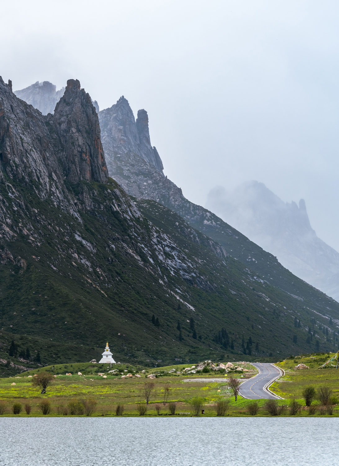 第四站:莲宝叶则;莲宝叶则是位于青藏高原东南部的一处风景区。地处青藏高原东南部,是巴颜额拉山南段支脉,位于四川省的阿坝县和青海省久治县、班玛县之间,总面积约800余平方公里,阿坝县的景区面积大约500余平方公里,境内最高海拔5141米,山峰平均海拔在4000米以上,是藏区著名的神山,位居藏区十大神山的第八位,安多地区众神山之首。“莲宝叶则”的汉语意思为尊严的玉石之峰,民间通常称为石头城堡或石头山。莲宝叶则是雄伟的奇峰异石的世界和艺术圣殿,这里山势雄奇峻伟,充满阳刚之气;山体规模宏大,绵延不绝;湖泊星罗棋布,银瀑飞悬。