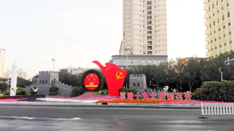 晨起门口转悠。由于马上要召开十九大,街上有鲜明的十九大元素。