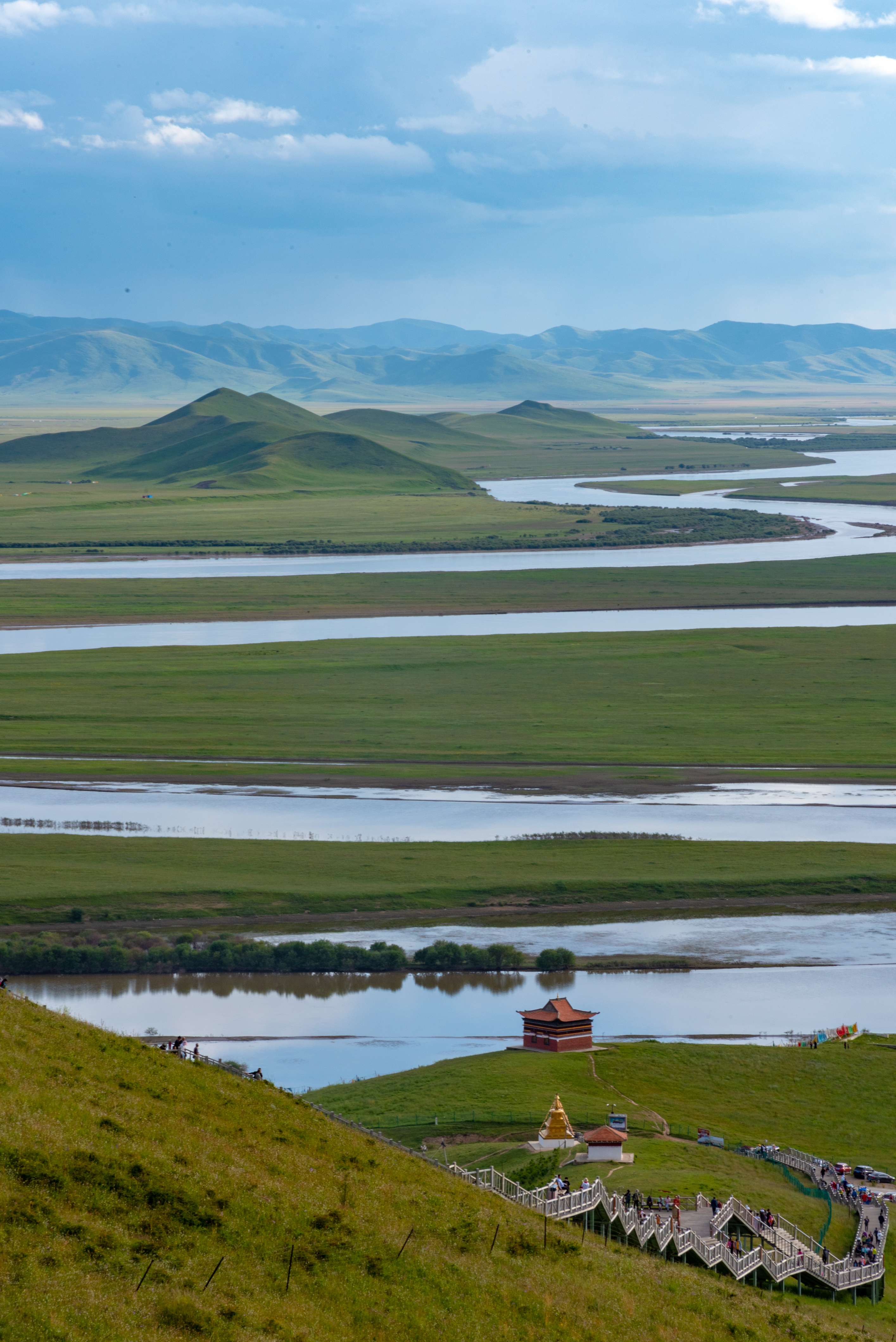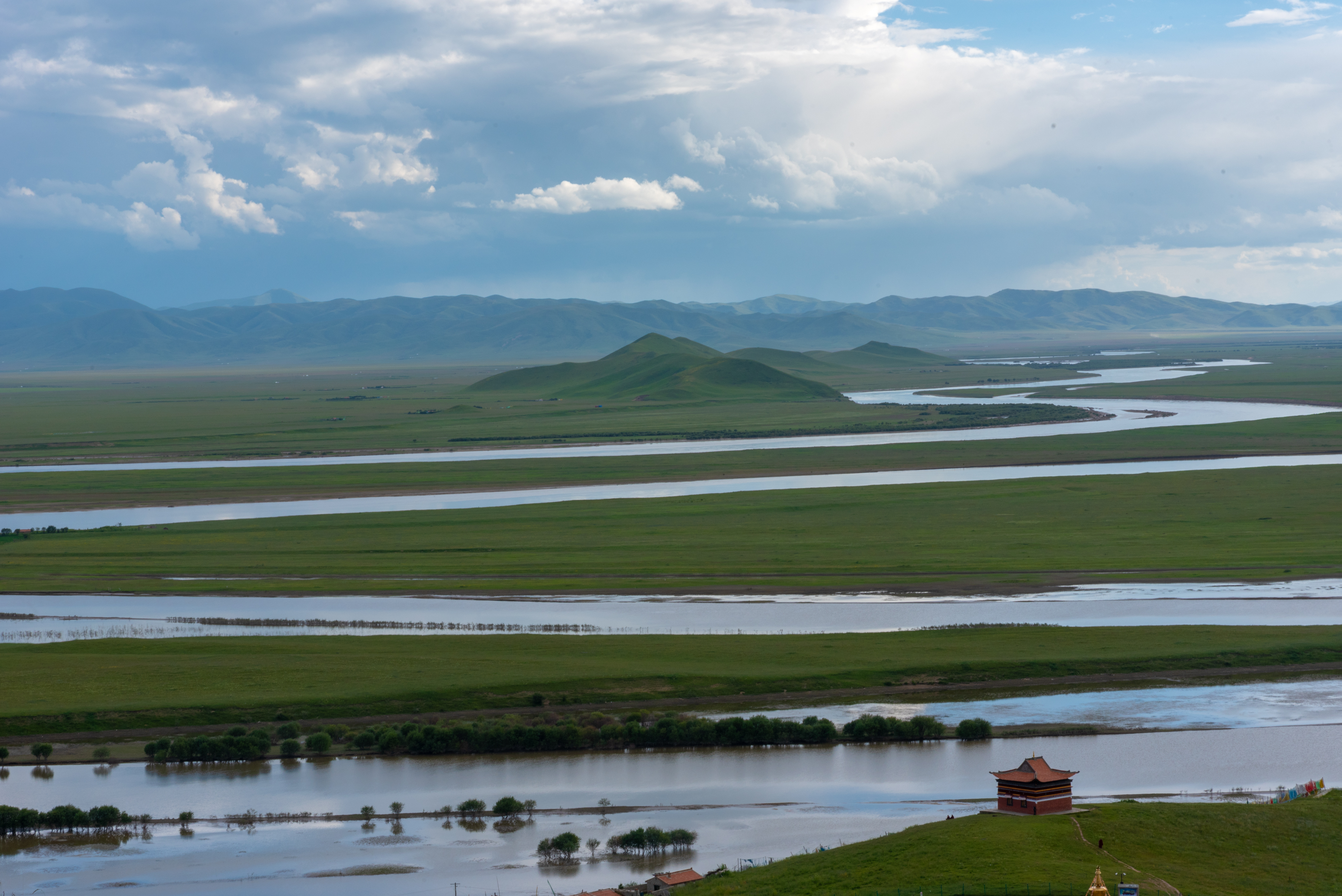 玛曲县往南,湿地资源愈加丰富,阿万仓湿地就在这里,蜿蜒的溪流在草原上交汇,俯瞰起来好似一颗枝繁叶茂的大树平铺开来。
