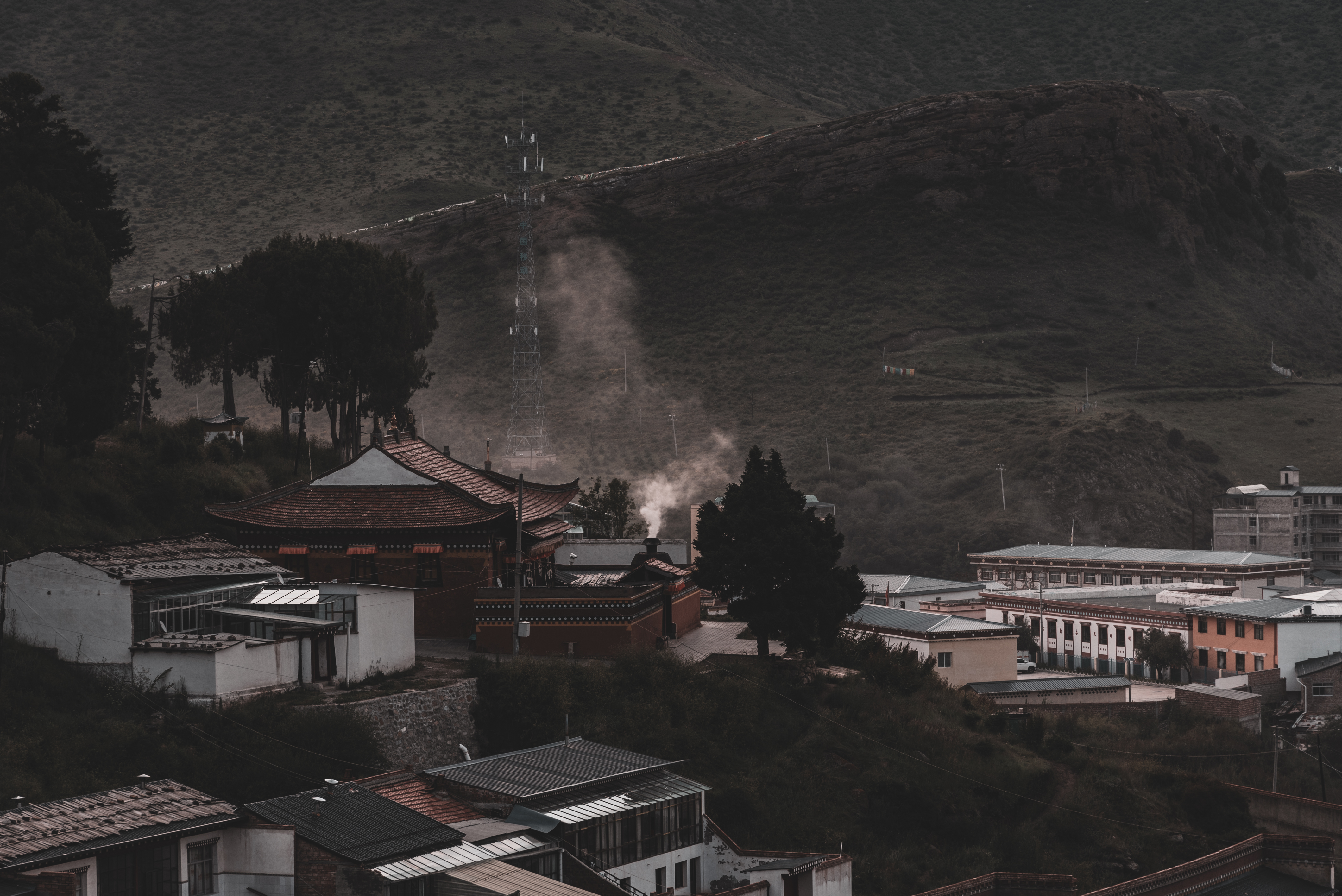 朝霞虽然没有等到,但是却看到了郎木寺清晨的静谧,慢慢的有人上山转寺转塔,早餐的炊烟也升了起。