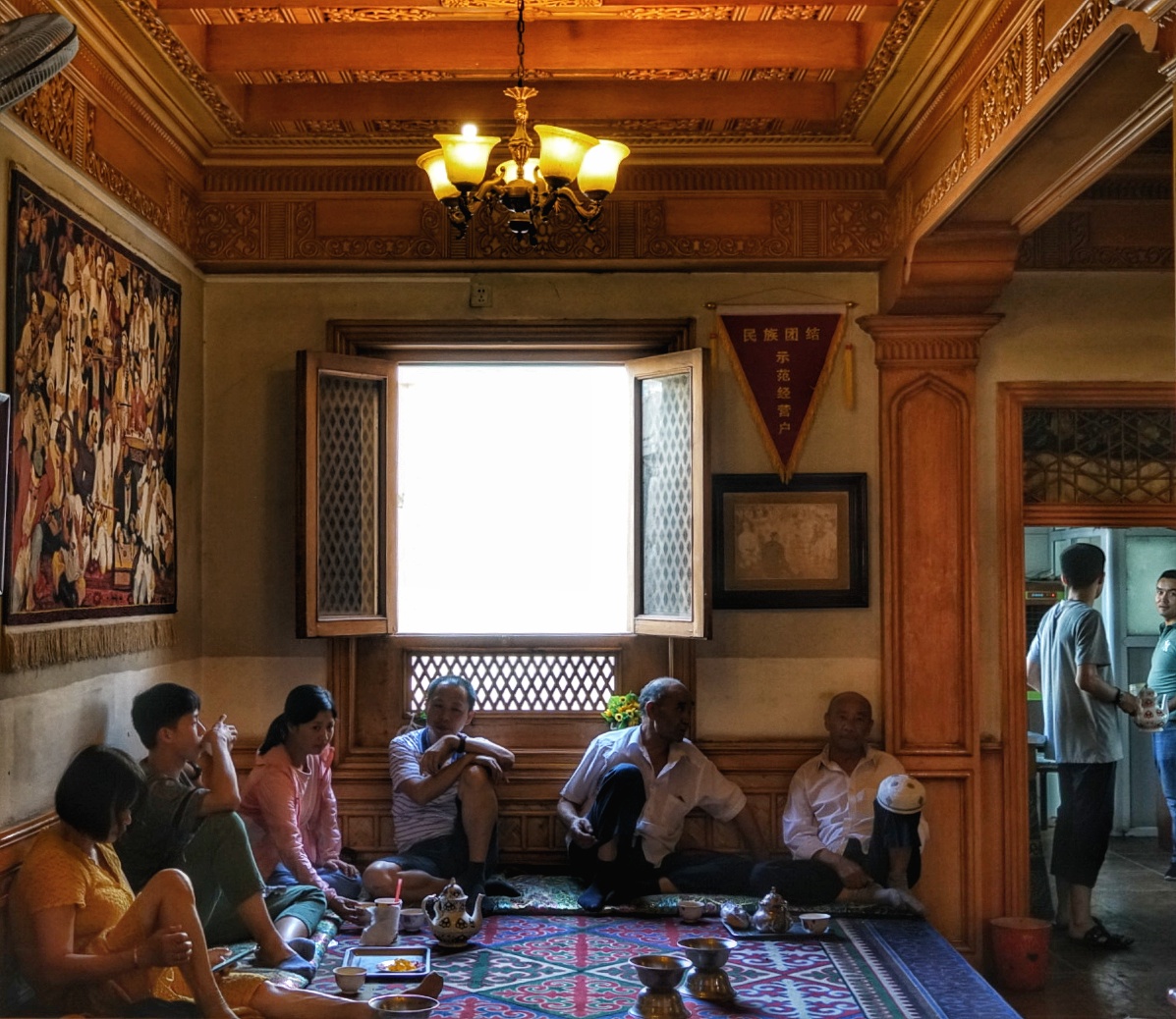 在喀什老城,每当晨曦初现,买买提·吾斯曼就会敞开大门,静待茶客光临,一如在百年前清晨忙碌的祖辈们。老城茶客们陆续穿过阡陌巷道,到茶馆品茶聊天,亦如百年前清晨的祖辈们。数百年前起,这里就一直是喀什老城最热闹繁华的地段。尽管几易其主,茶馆依旧留存下来,像久居于此的老者,默默注视着边城的变迁。