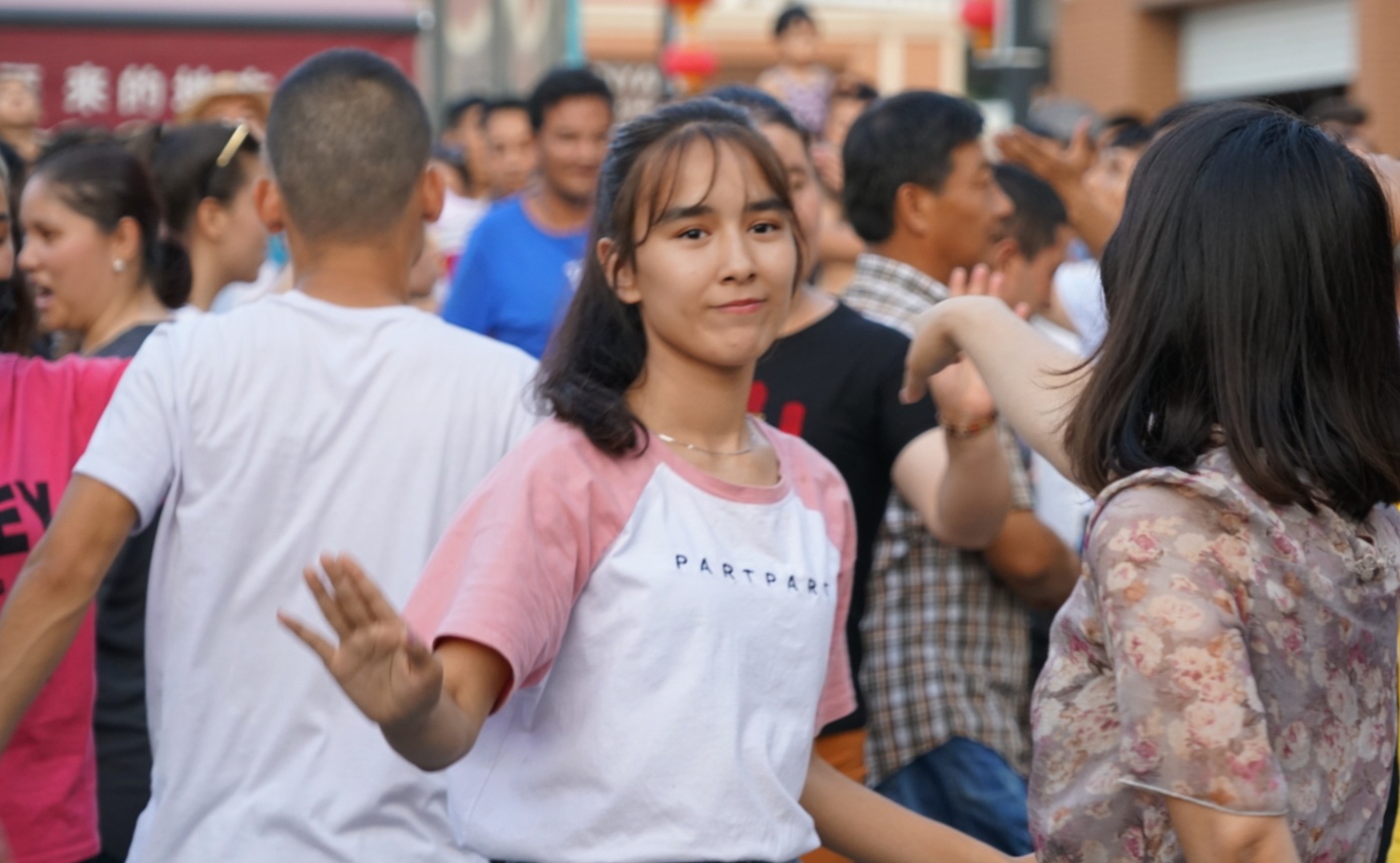 音乐响起,无论男女老幼都能跳上一段,感觉维族舞蹈节奏感强,且面部表情极为丰富。