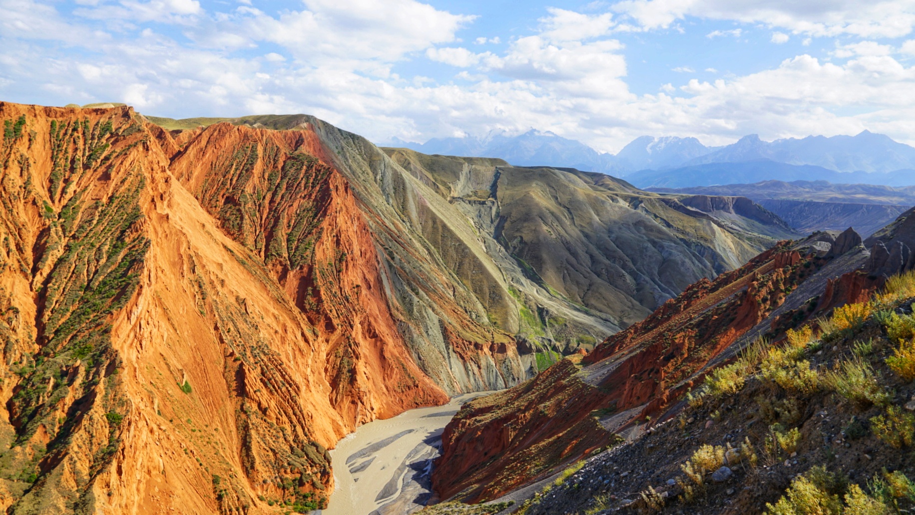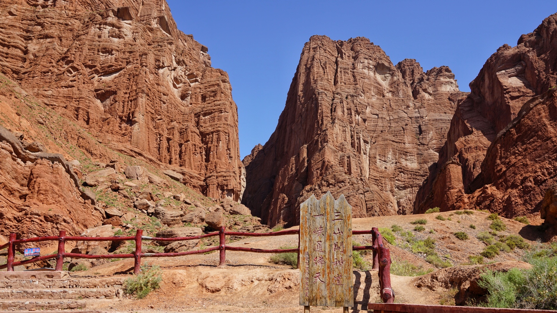 神秘大峡谷正处在克孜利亚胜景中。庞大的红色山体群形成于距今1.4亿年前的中生代的白垩纪,经亿万年的风剥雨蚀,洪流冲刷,形成纵横交错,层叠有序的垅脊与沟槽,远看如诗如画,状若“布达拉宫”,仙天琼阁;近瞧若人似物,如梦似幻,惟妙惟肖,神韵万端。