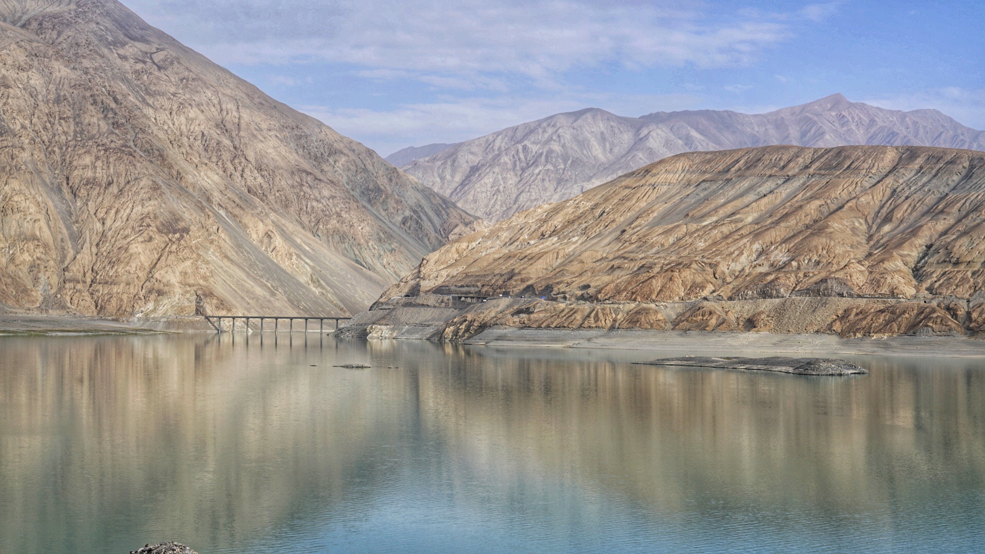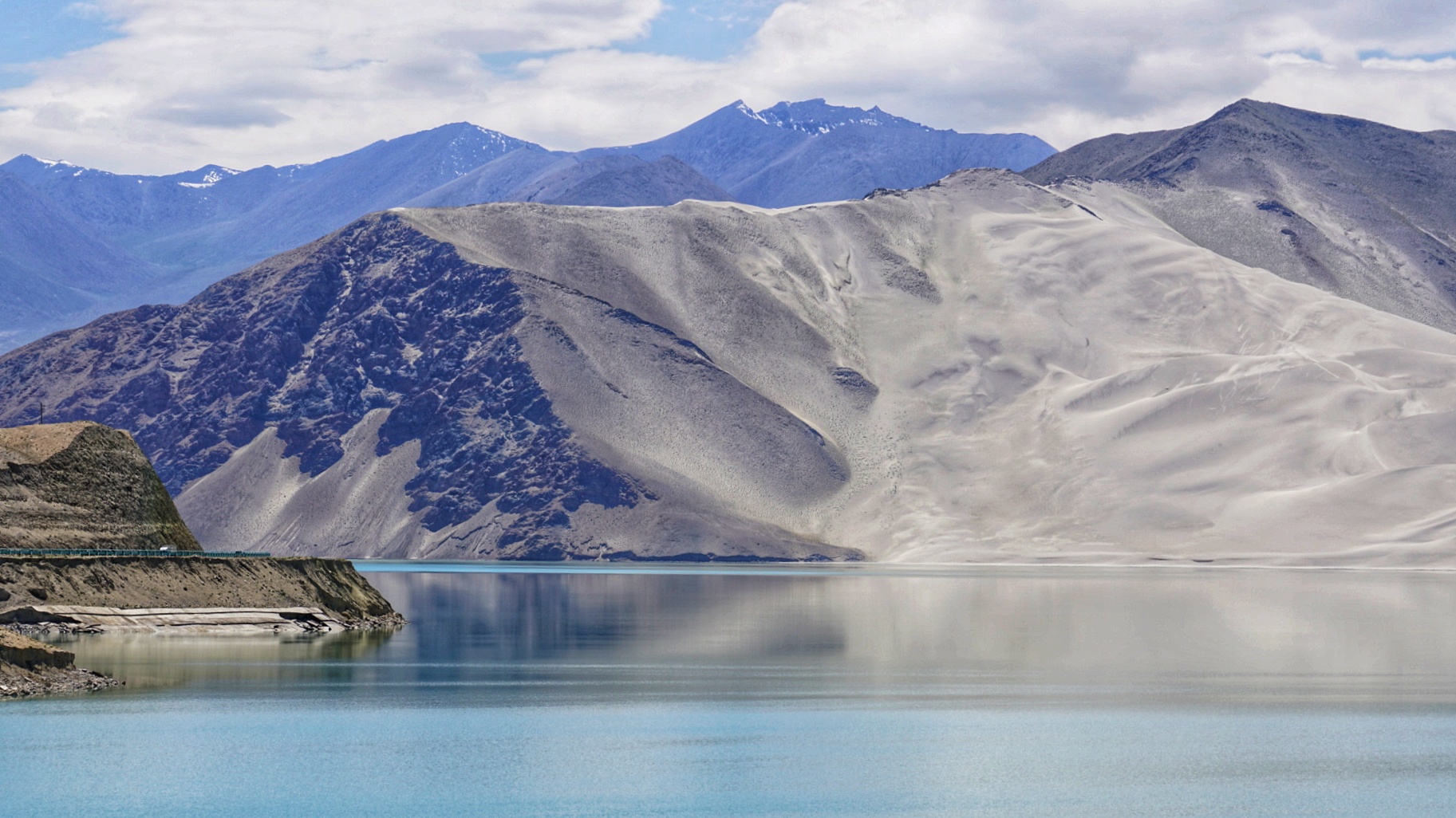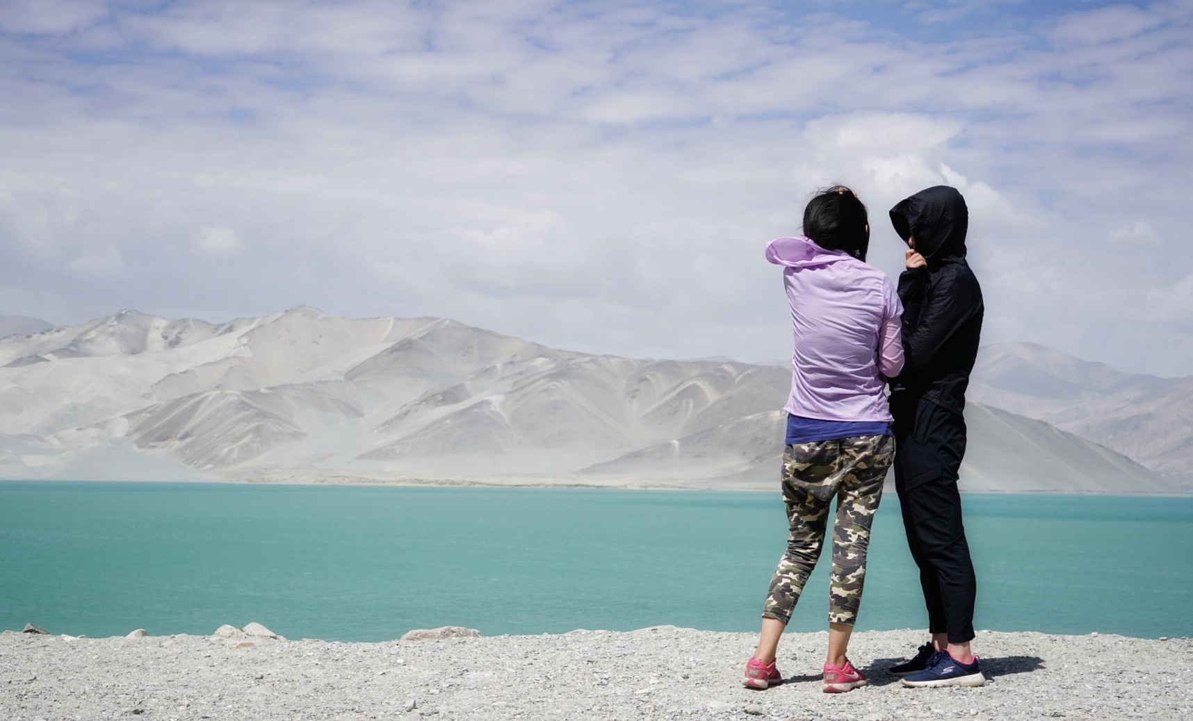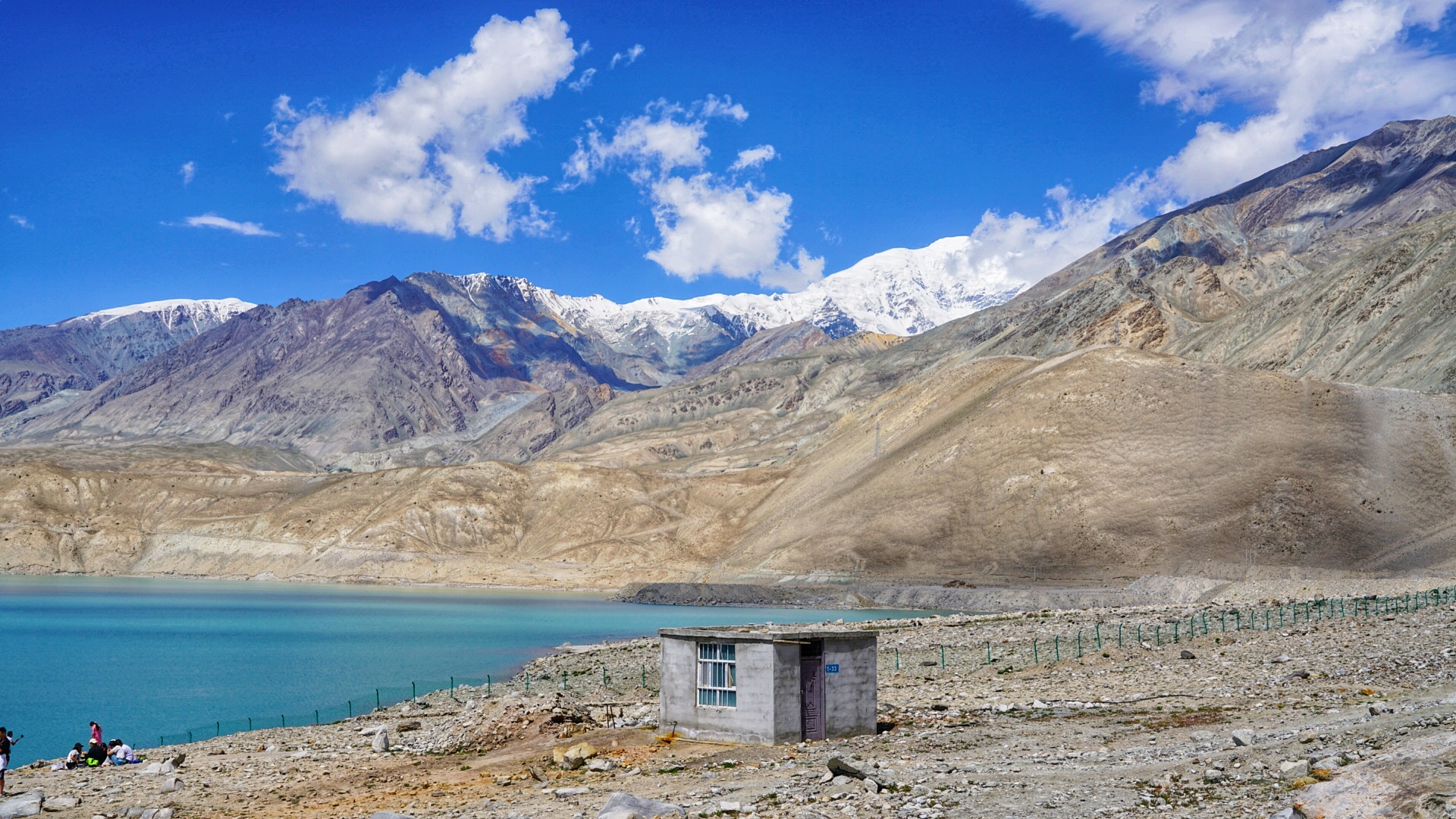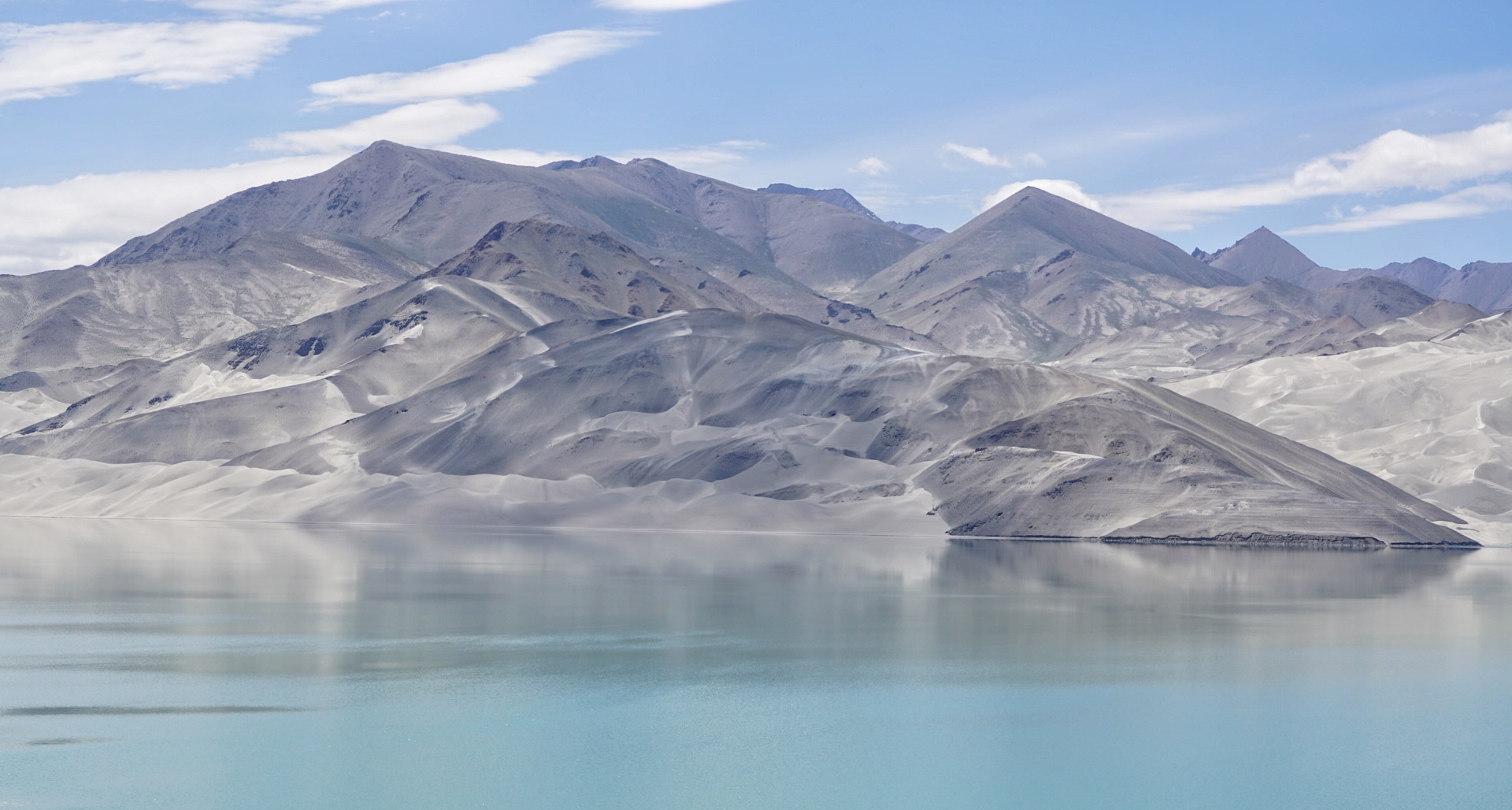 进入塔什库尔干后惊艳“白沙湖”,风景秀丽,水天一色。湖西侧因常年风吹导致湖中白沙堆积,故当地人们称之为“白沙湖”。白沙湖湖水清澈,远处山景倒映,美丽非凡。