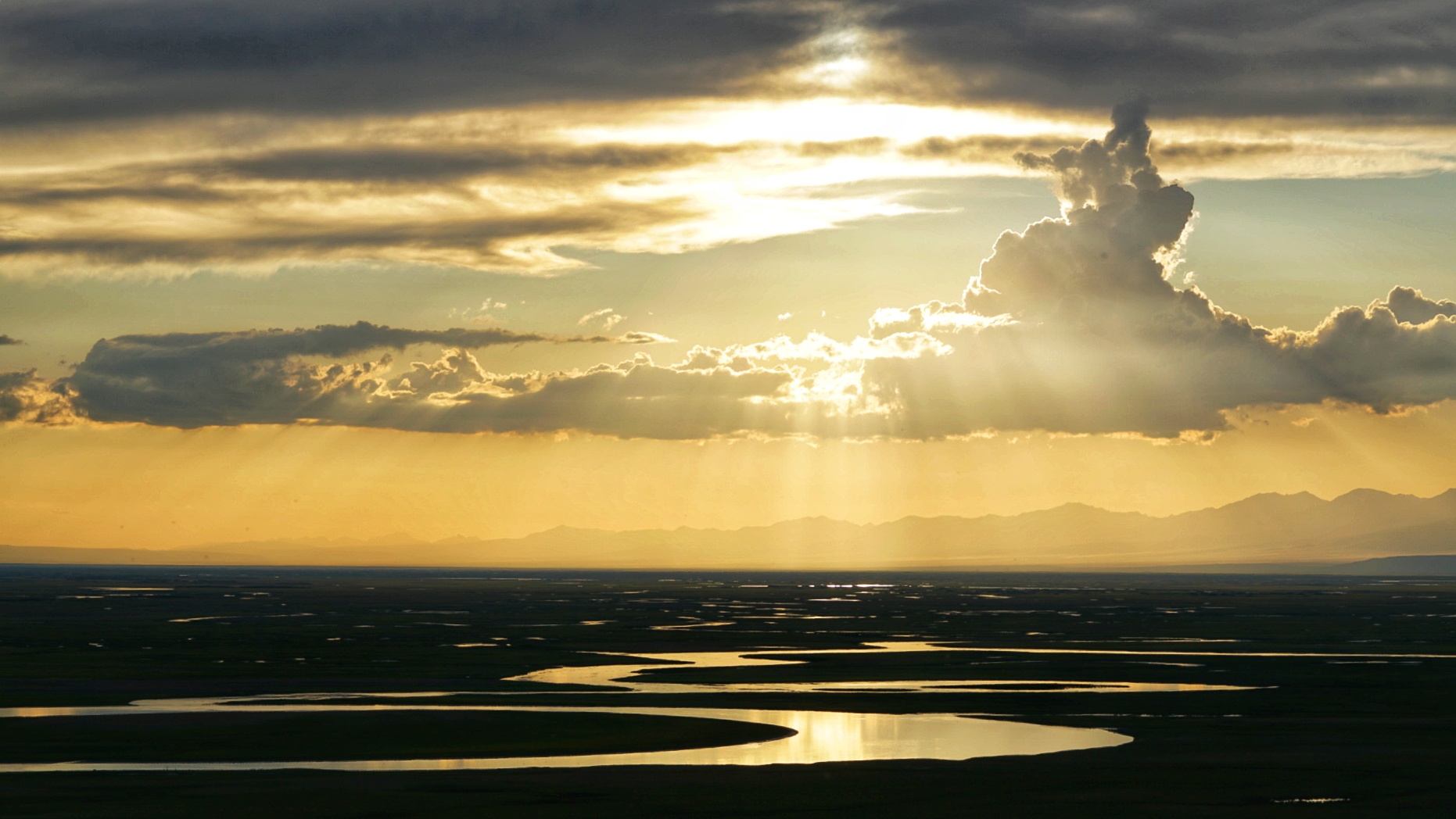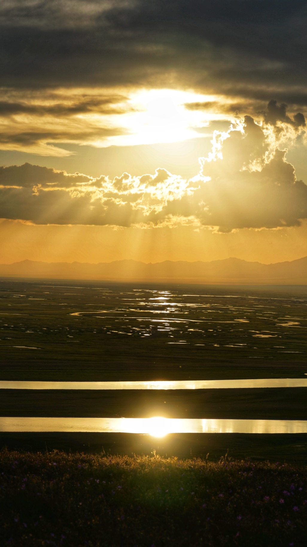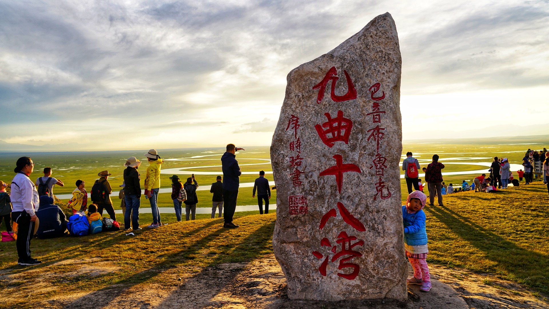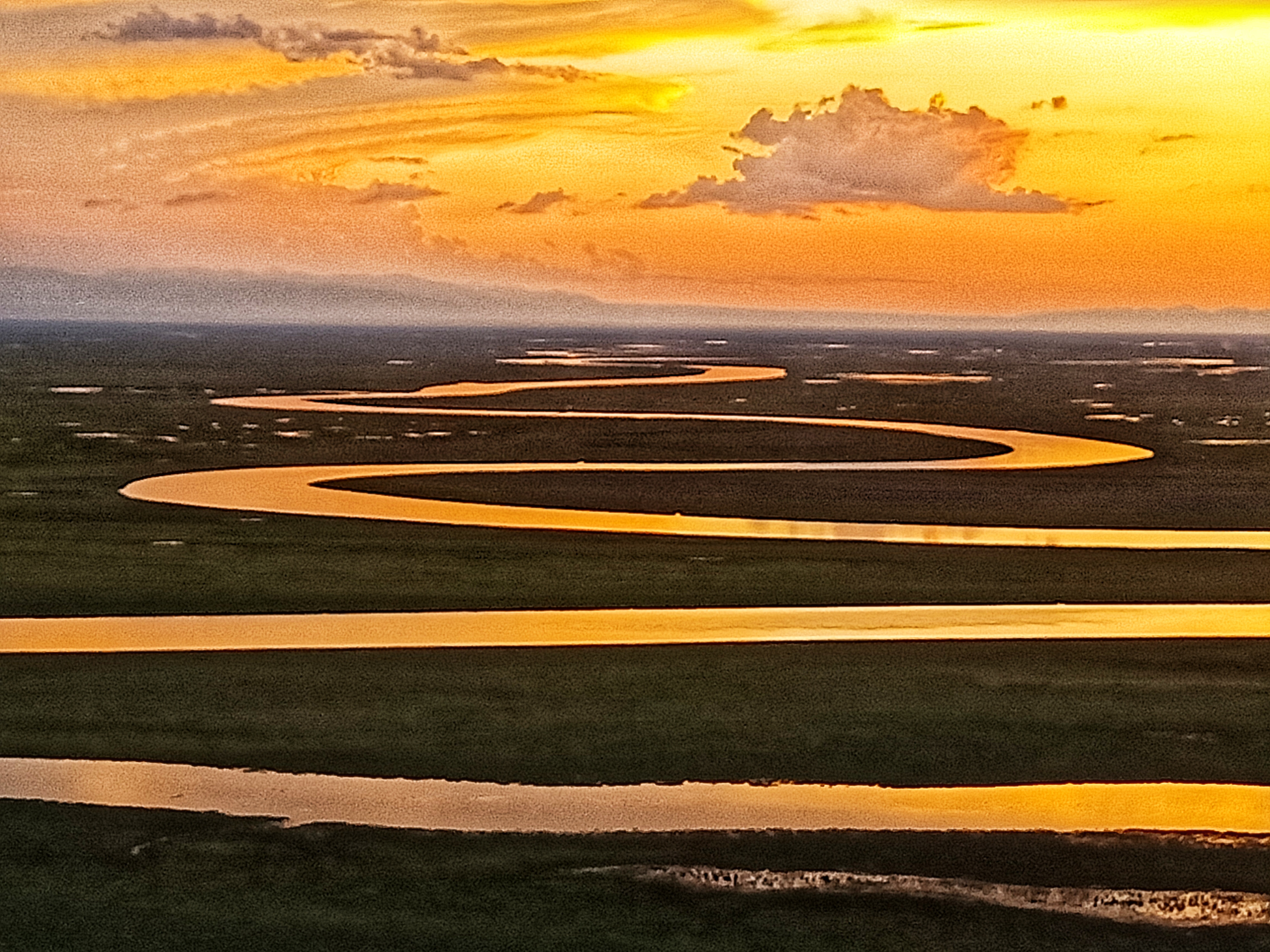 巴音布鲁克的风光大气,一望无际的草原上九曲黄河蜿蜒绵亘,日落之时现九日奇观,难得难得!