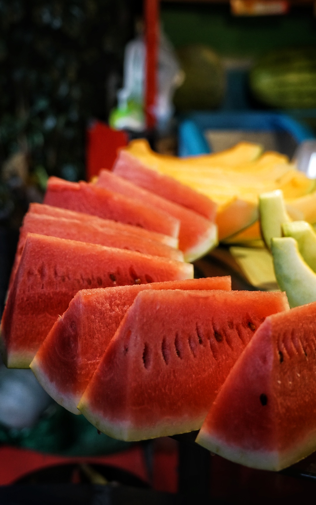 新疆的西瓜、哈密瓜是出了名的甜度高、水分多、口感好,今日一尝果然名不虚传。