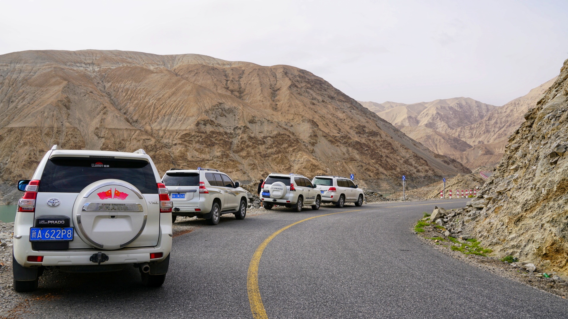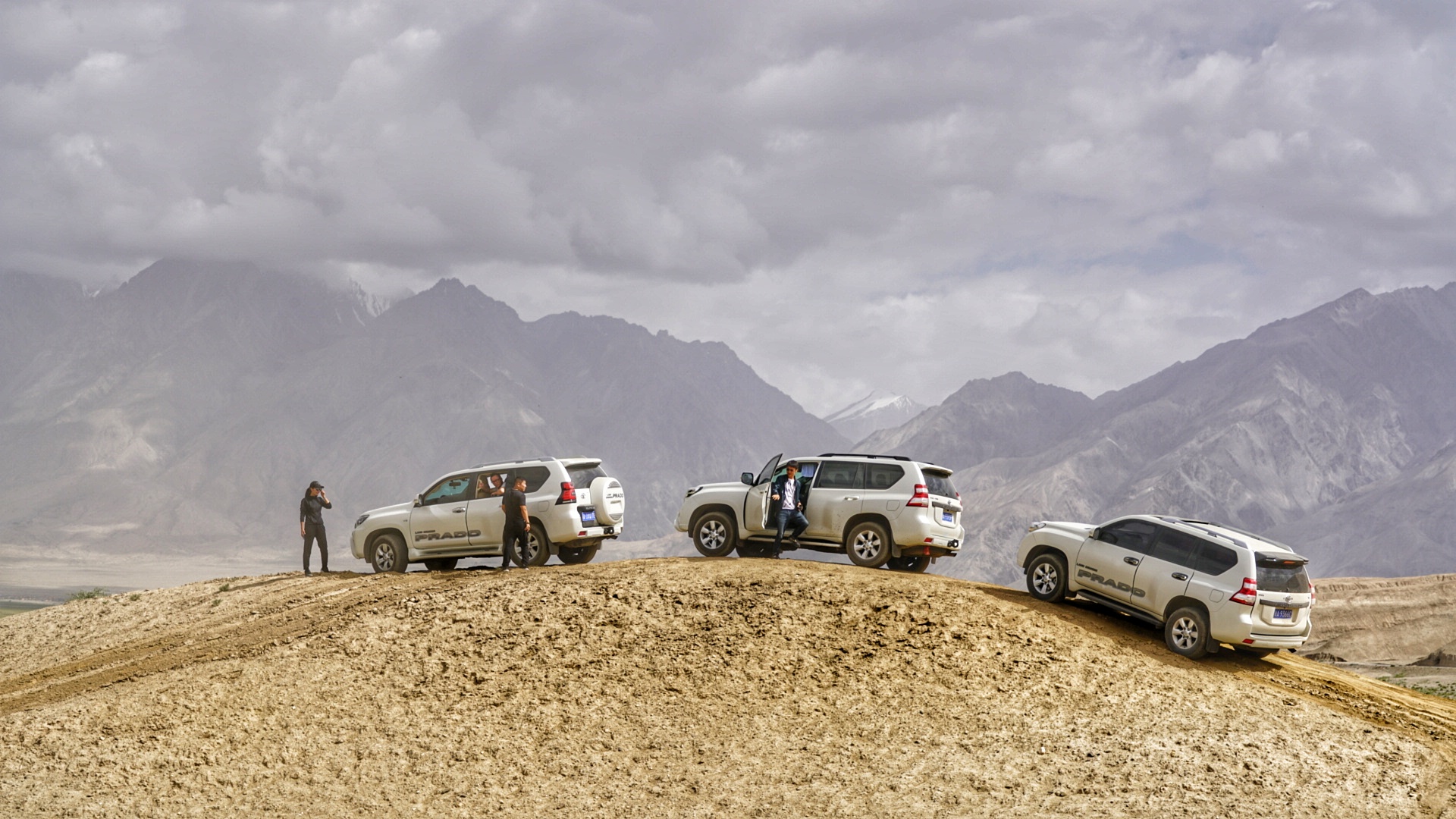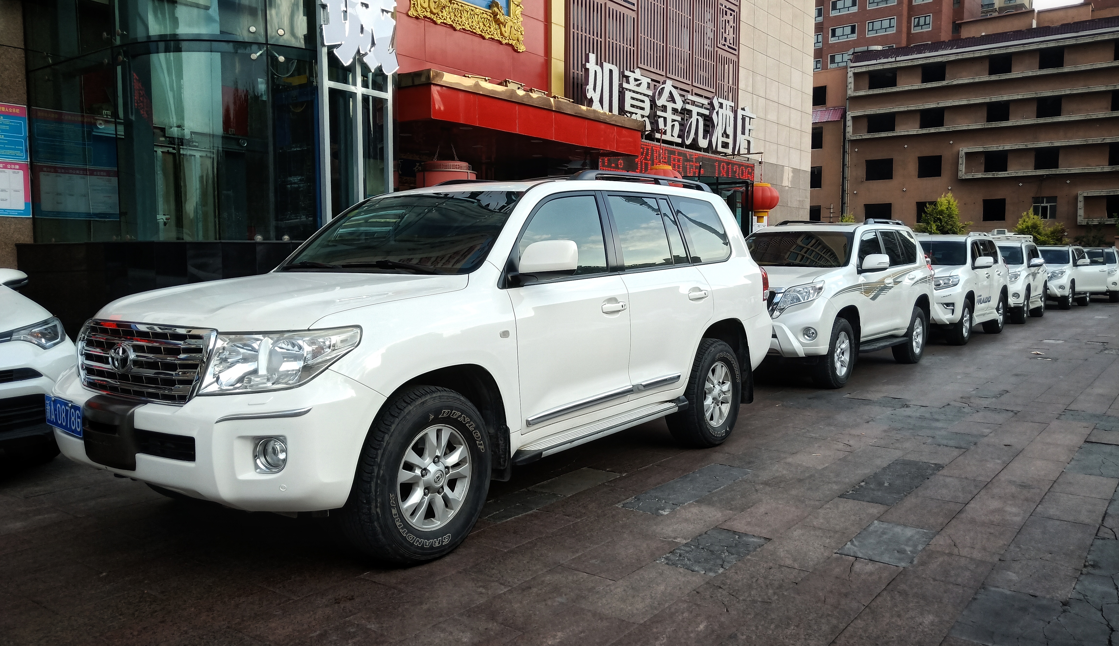 8月4日,旅程正式开始,搭载我们的丰田霸道车队在酒店门口一字排开,雄赳赳,气昂昂颇有气势。