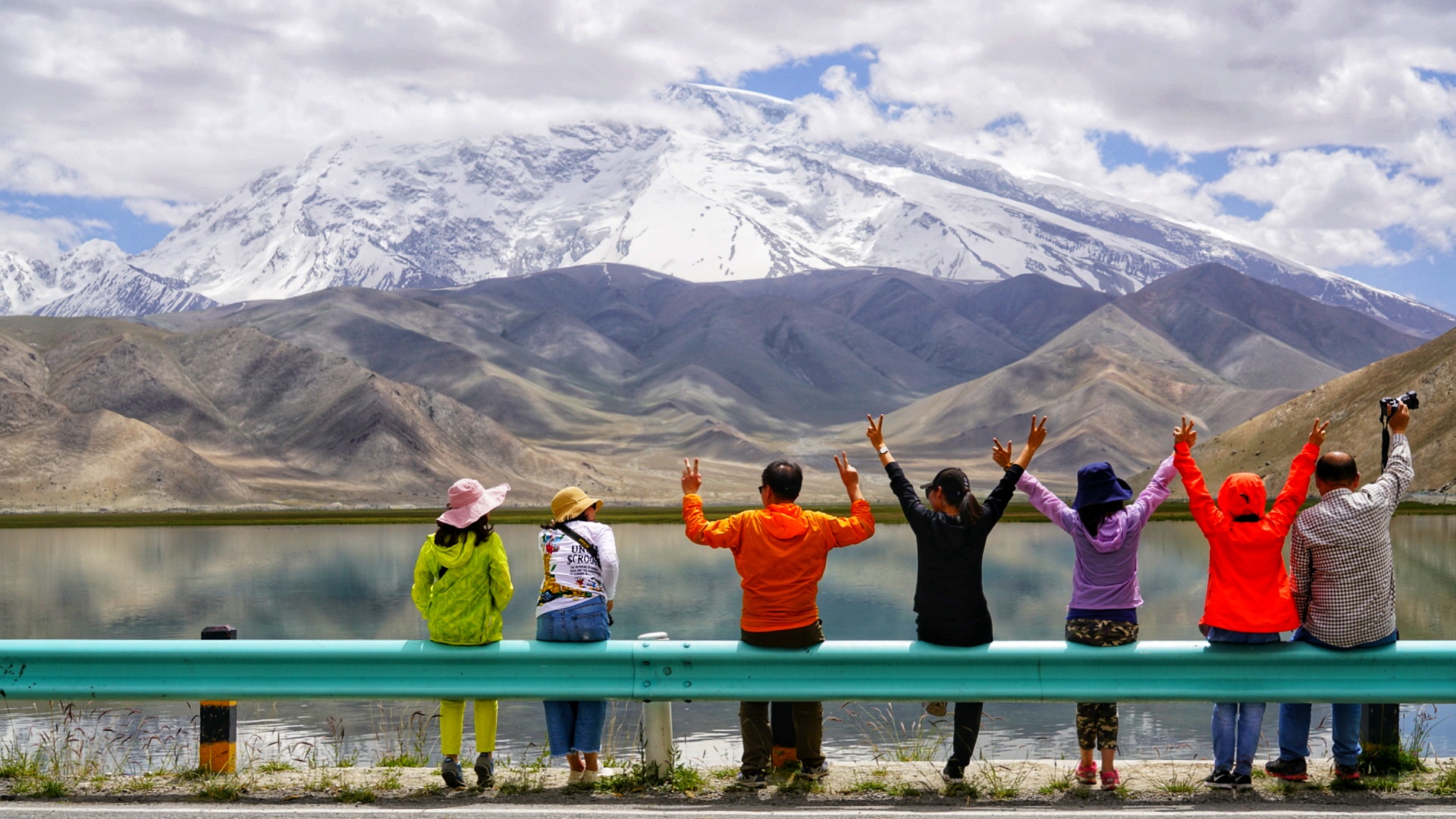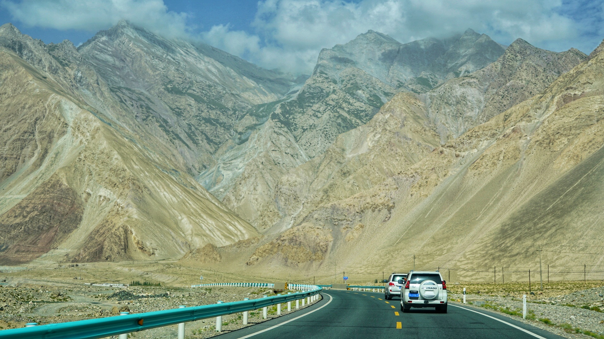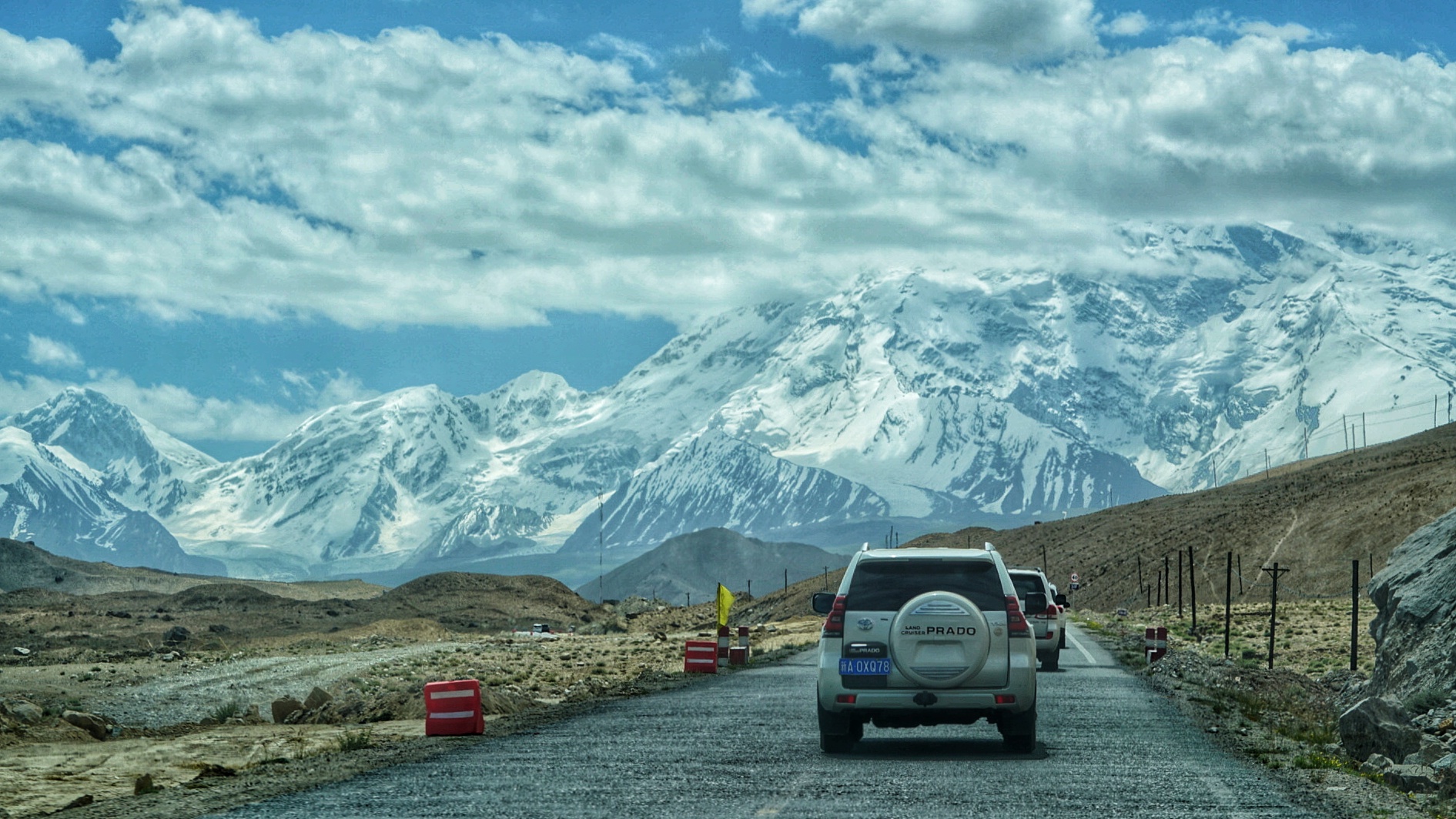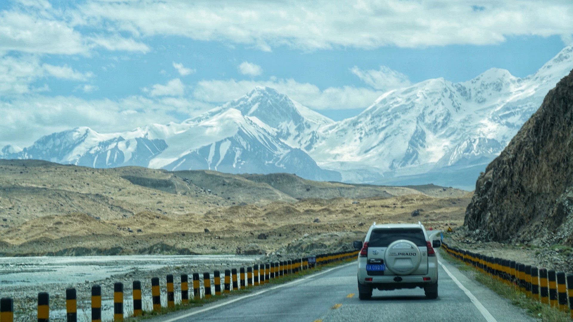 继续向帕米尔高原挺进,远处高大巍峨的“冰山之父”慕士塔格峰越来越清晰。