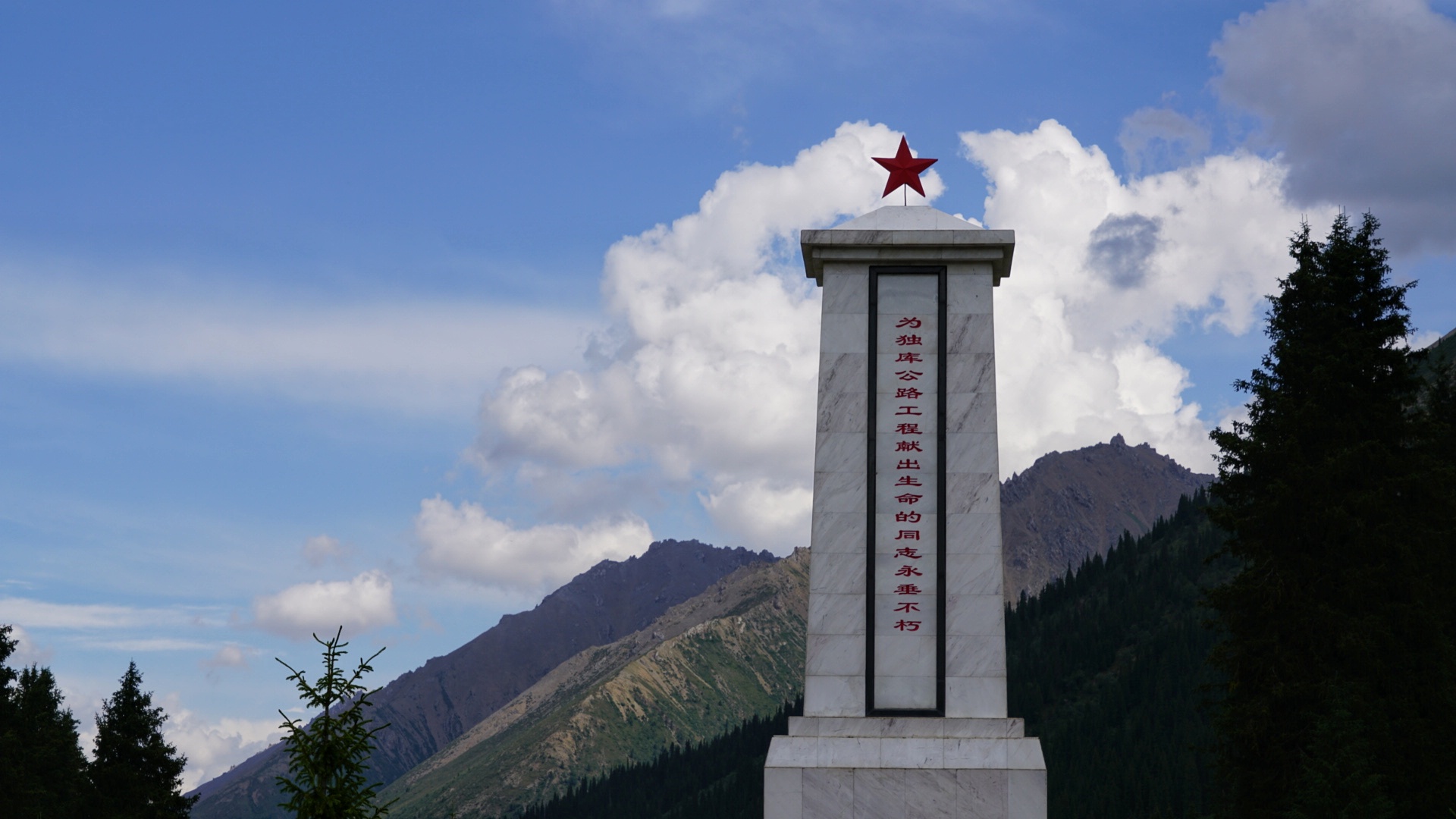 缅怀革命先烈、弘扬“天山精神”,乔尔玛革命烈士陵园是为了纪念为了修建天山独库公路而牺牲并安葬在这里的168名革命烈士而建。在长达9年的公路建设中,有上百名解放军战士因雪崩、泥石流等原因而长眠此。因此,这是一条英雄之路。独库公路从独山子到库车,是217国道的早期形态,纵贯天山南北,全长561公里,被《中国国家地理》评选为“纵贯天山脊梁的景观大道”。