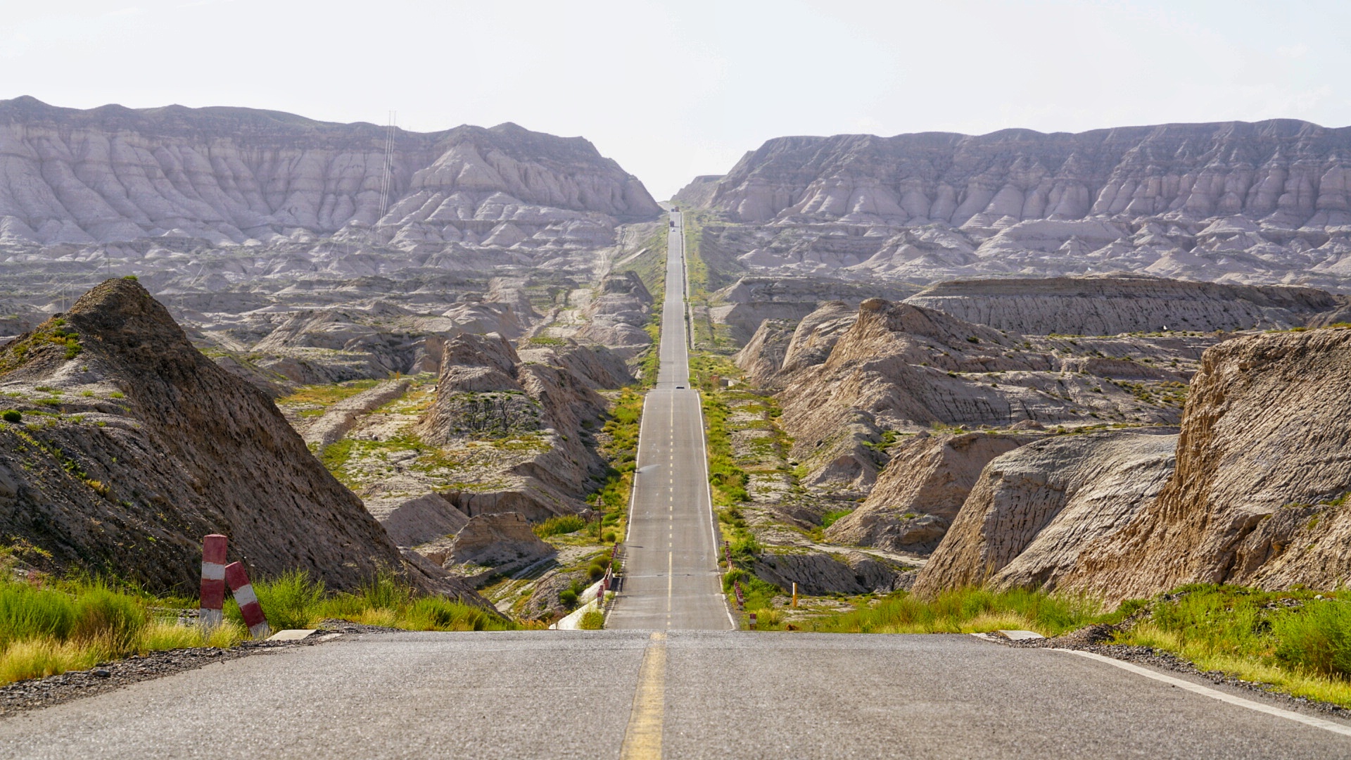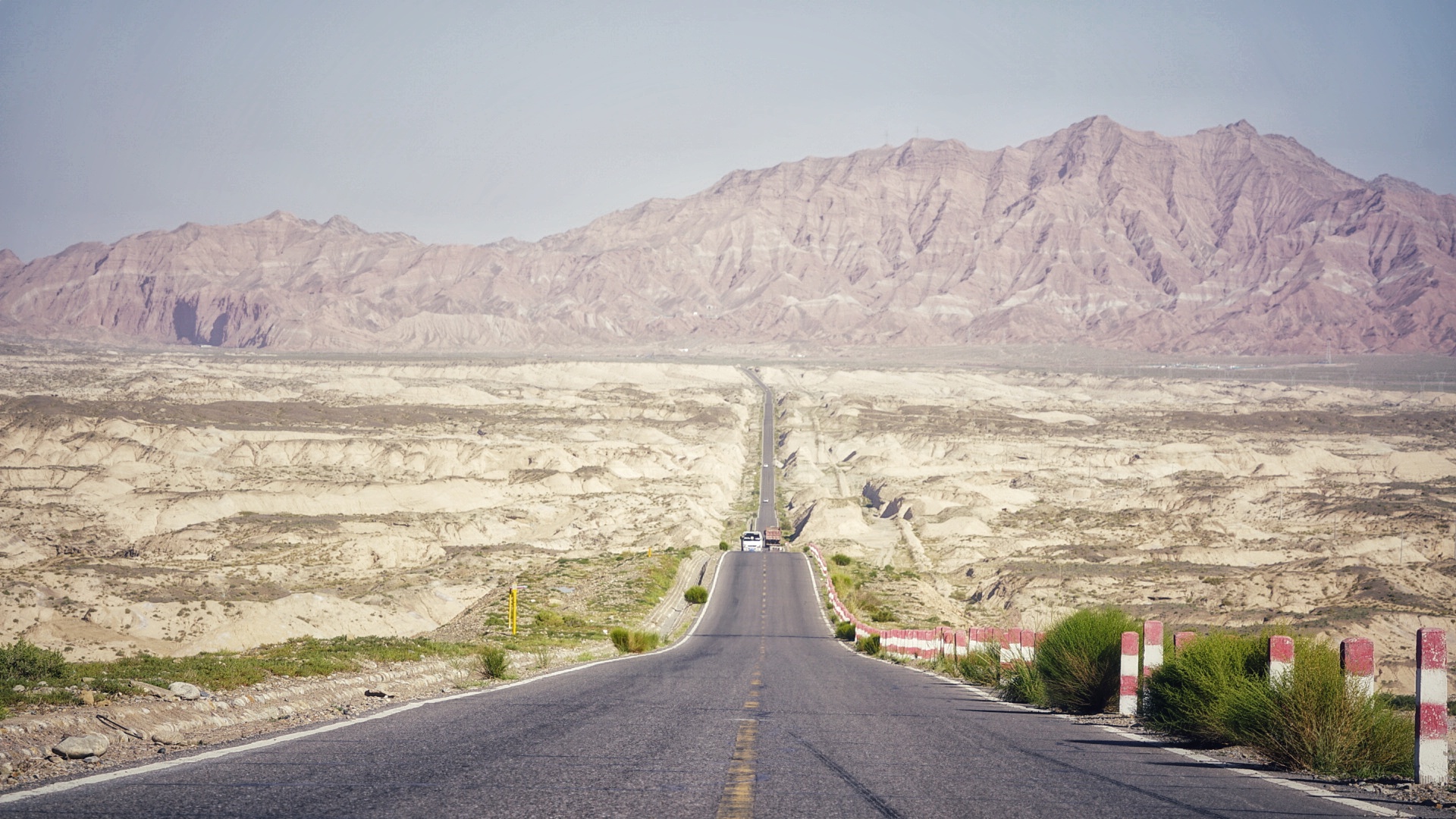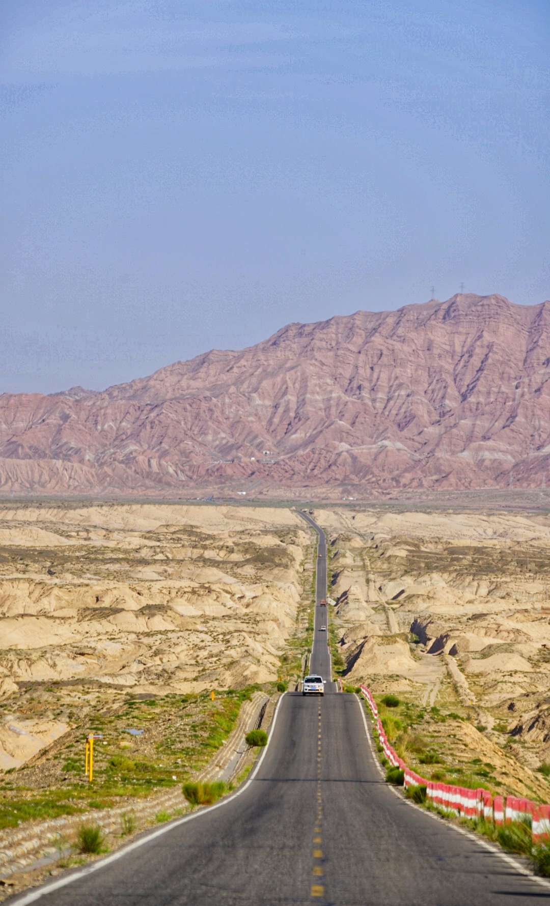 至库车的途中,车队队长引领我们去了一条他私人珍藏的网红公路,公路沿山势起伏,如同波浪般延伸,拍人像绝佳打卡点。