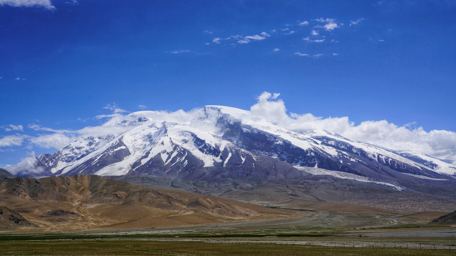 挺近帕米尔高原,经过边防检查站后迎接我们的是公格尔雪山,公格尔峰和公格尔九别峰两座七千米以上的高山如卫兵一般守护着边防哨所!