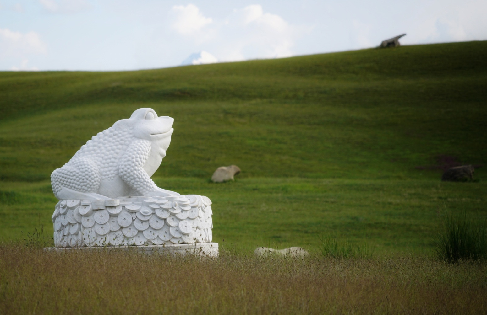 天鹅湖畔竟然放置三只癞蛤蟆雕像,也算用心良苦。