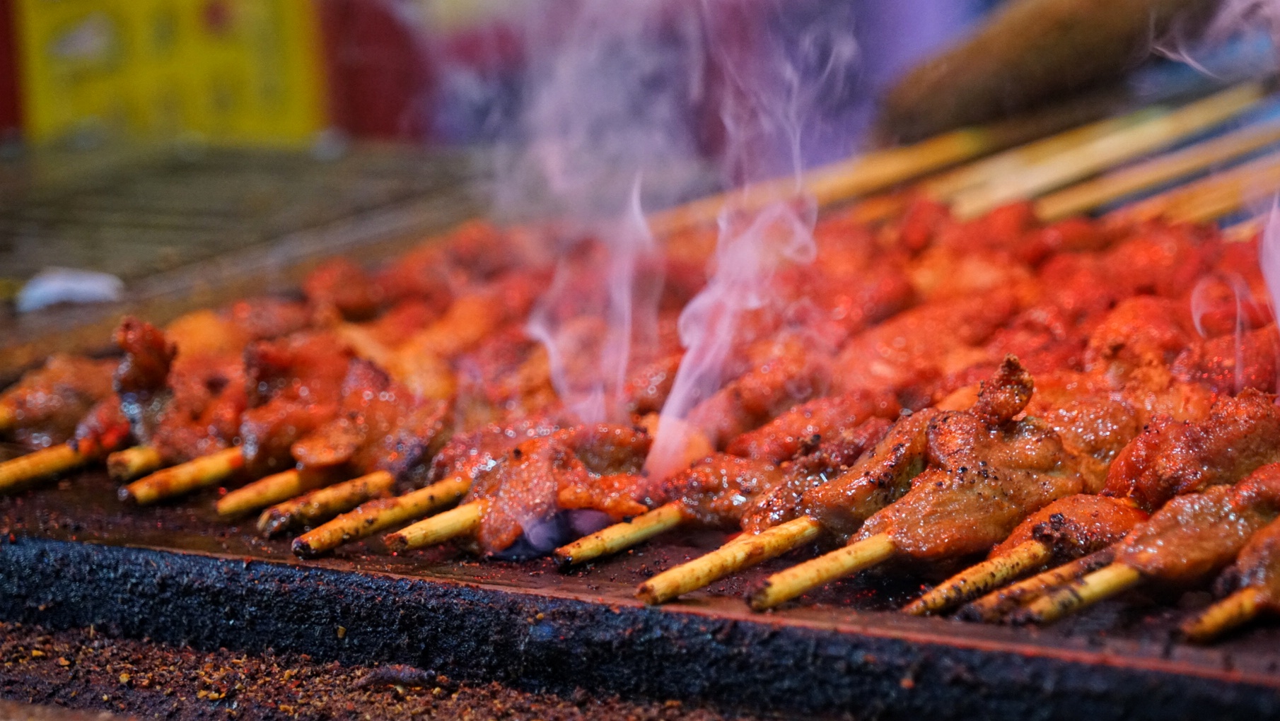 新疆街头巷尾都有的美食:烤羊肉串,美味来源于新鲜的食材,毫无膻味且肥瘦搭配的羊肉,配合高超的烧烤手艺,香味就让人垂涎欲滴。