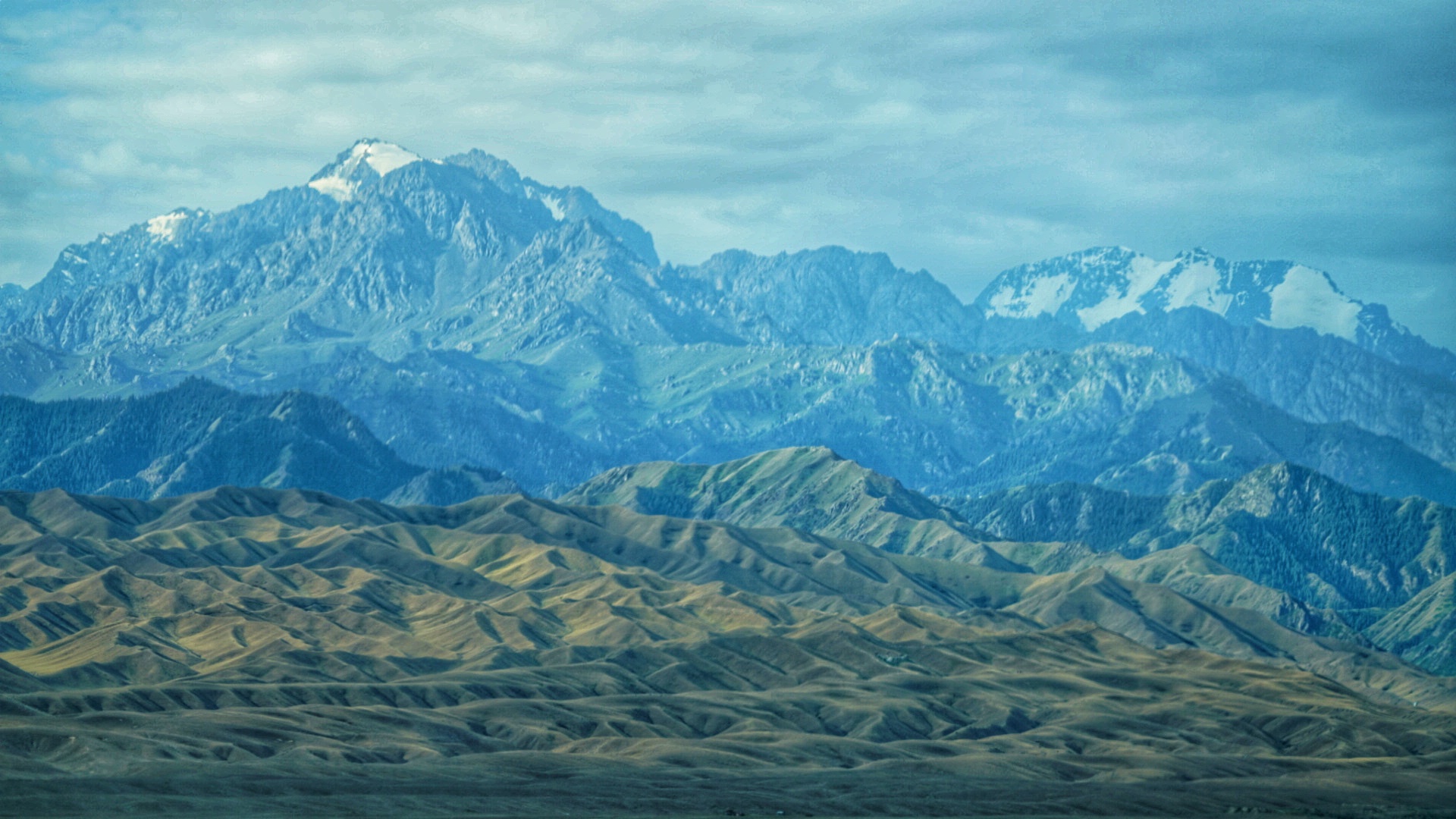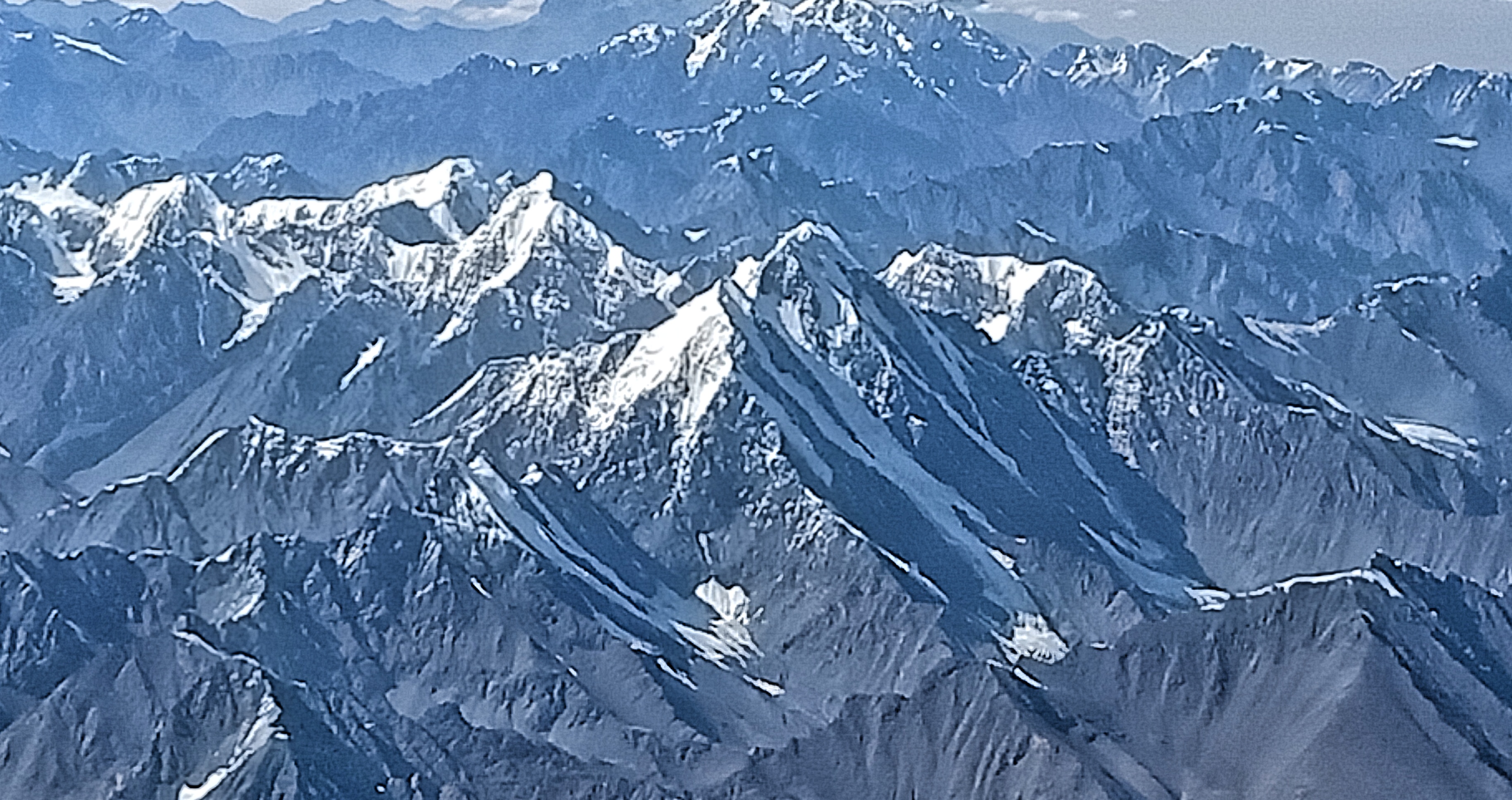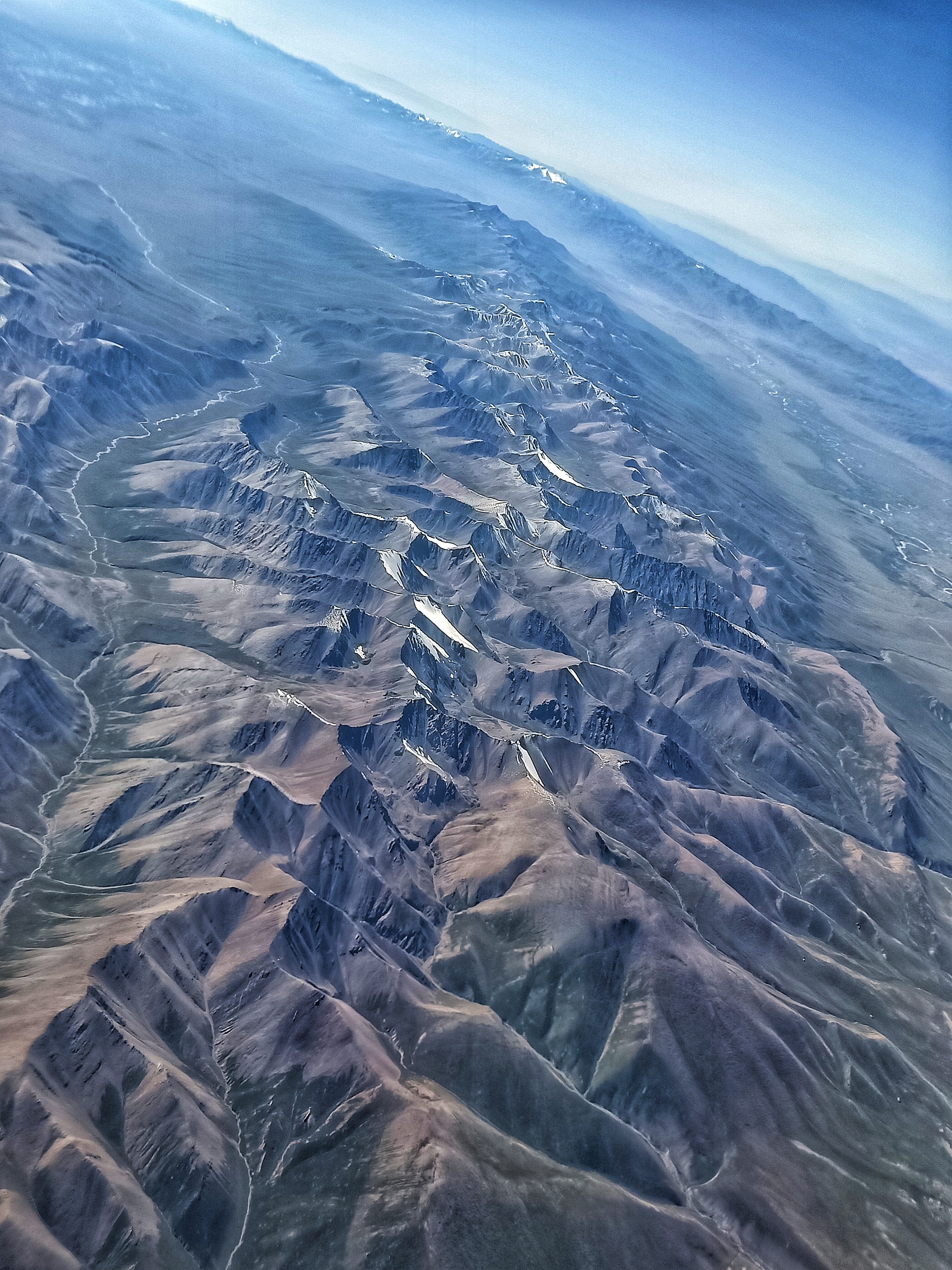 从空中俯瞰天山山脉,我看见一座座山,一座座山川,一座座山川相连。