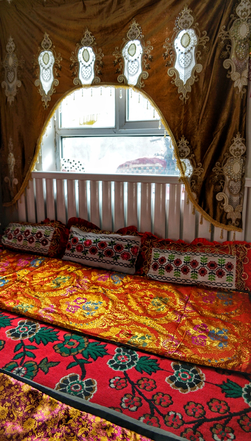 老茶馆的奶茶奶香浓郁,就是比较甜,阳台上的维族老人击打乐器放声歌唱也是一道风景。