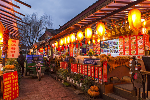 丽江古城:丽江有三个古镇,分别是丽江古城——也叫大研古镇,还有束河古镇以及白沙古镇。一般游客聚齐的地方都在大研古镇,大研古镇里面集合了来自各地在丽江开店的商家和少量的纳西族原住民。古城里面有售卖民族特色服饰,银饰,手鼓店,和小吃店,特色客栈,酒吧街等。
