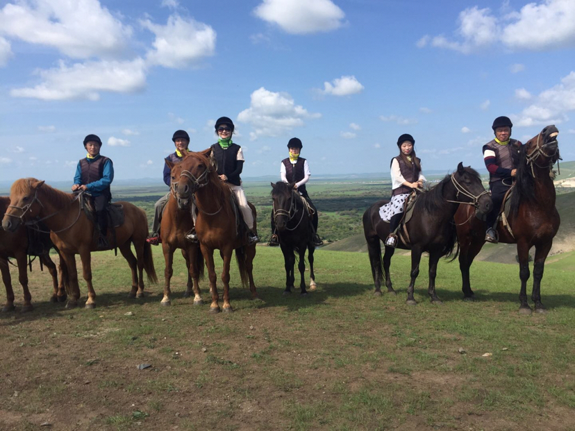 我们骑在骏马之上,背后是著名的根河湿地公园,蓝天白云,草原湿地,骑着骏马,我们看到了最美的风景……