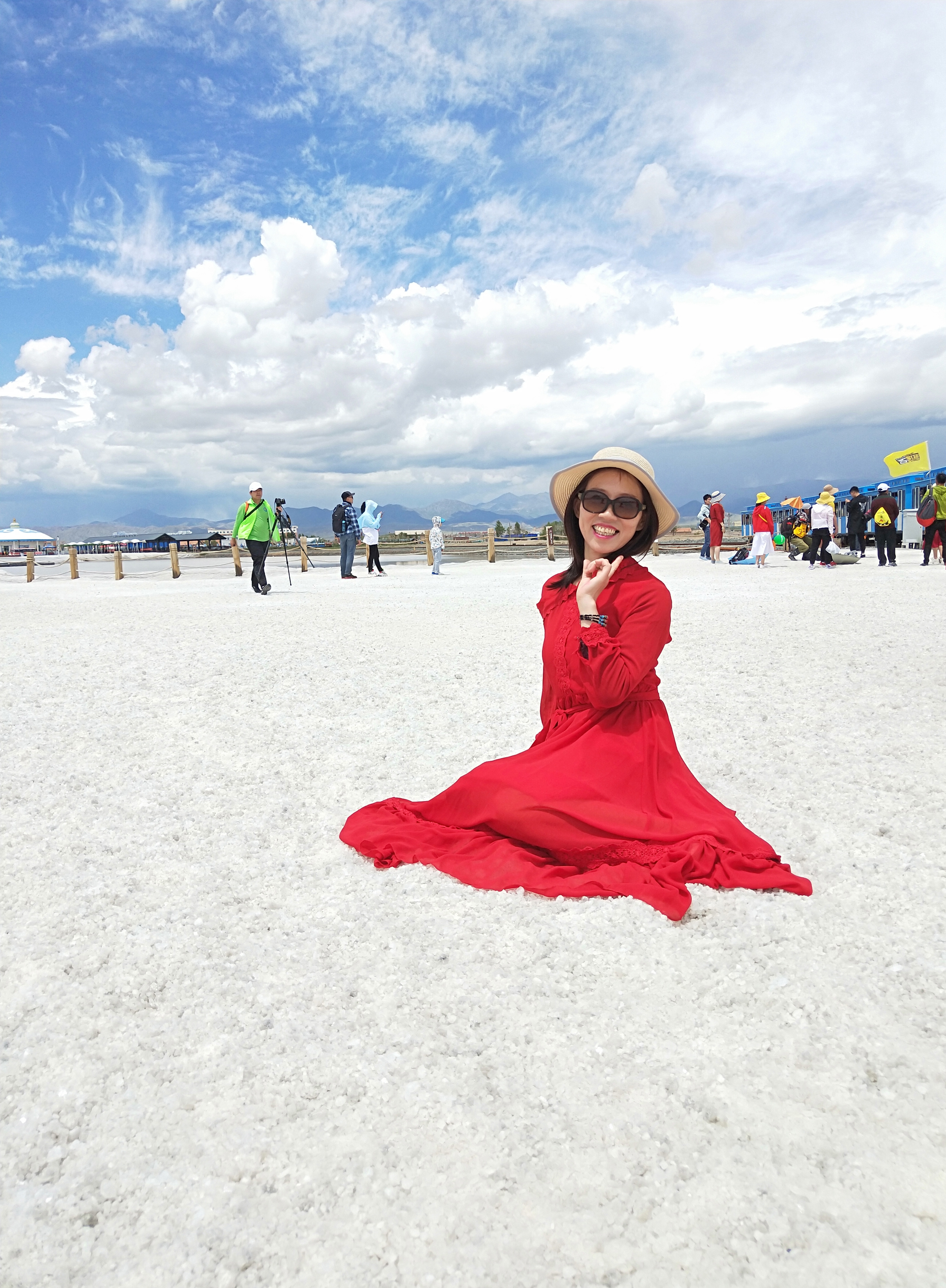 茶卡盐湖是一个网红打卡点,因抖音而红遍全国。这里拥有着惊人的盐矿,走进景区,一望无际的都是盐湖,天气好的时候,水天相接,浑然一体,宛如镜子一般,故有天空之镜之称。景区也因名气过旺而游客众多,好在我们有御用摄影师,所以每个人都能拥有属于自己的美照,很多游侠收到照片后马上换了头像,嘻嘻