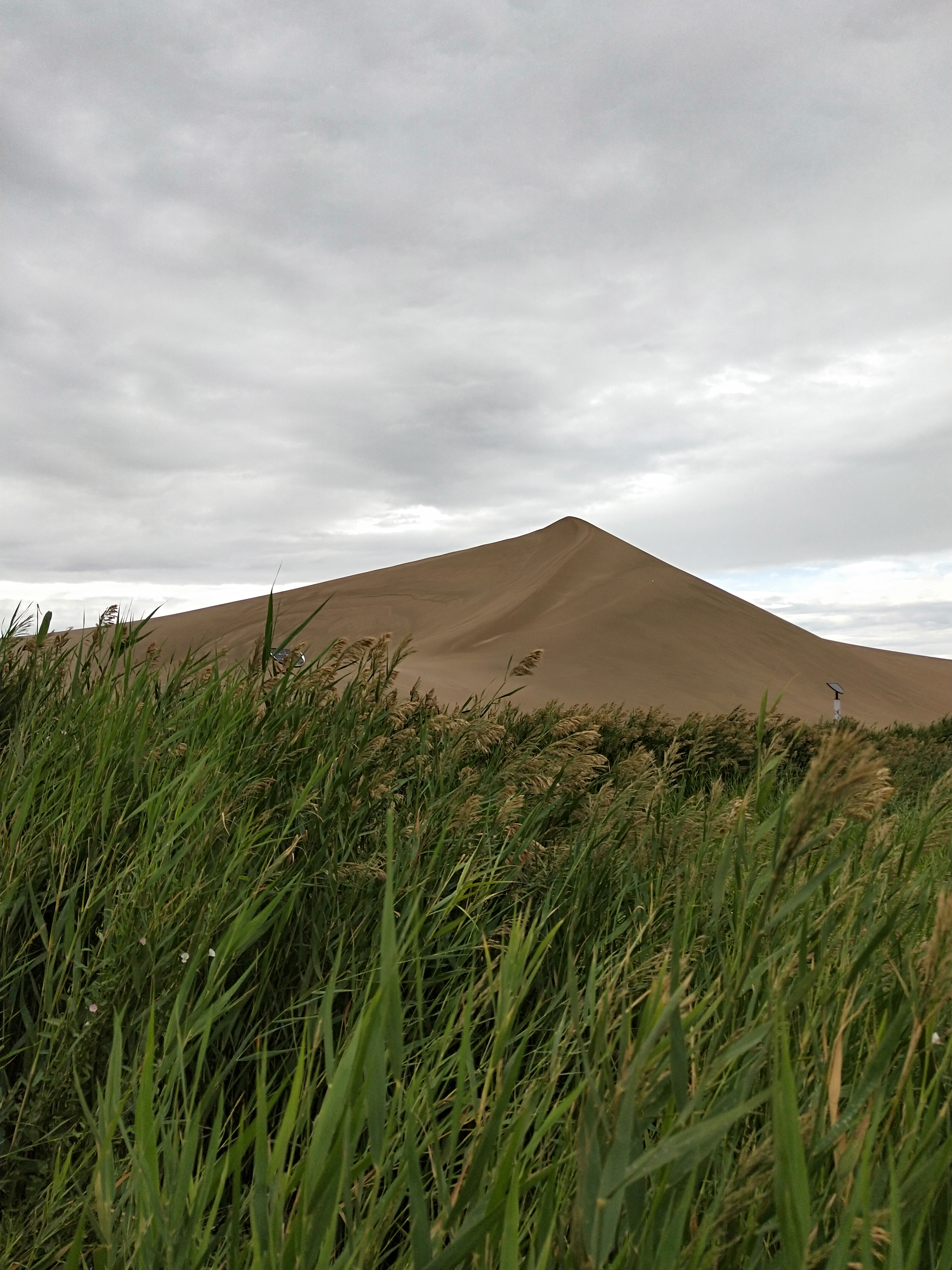 鸣沙山是属于塔克拉玛干沙漠的一个小支脉,登上沙山远眺是一望无际的沙漠风貌,但是在这沙漠中间,有一汪形似月牙的泉眼,泉水清澈见底,周围一圈芦苇丛生,行程了沙漠、泉水、绿洲相辅相生的独特景观