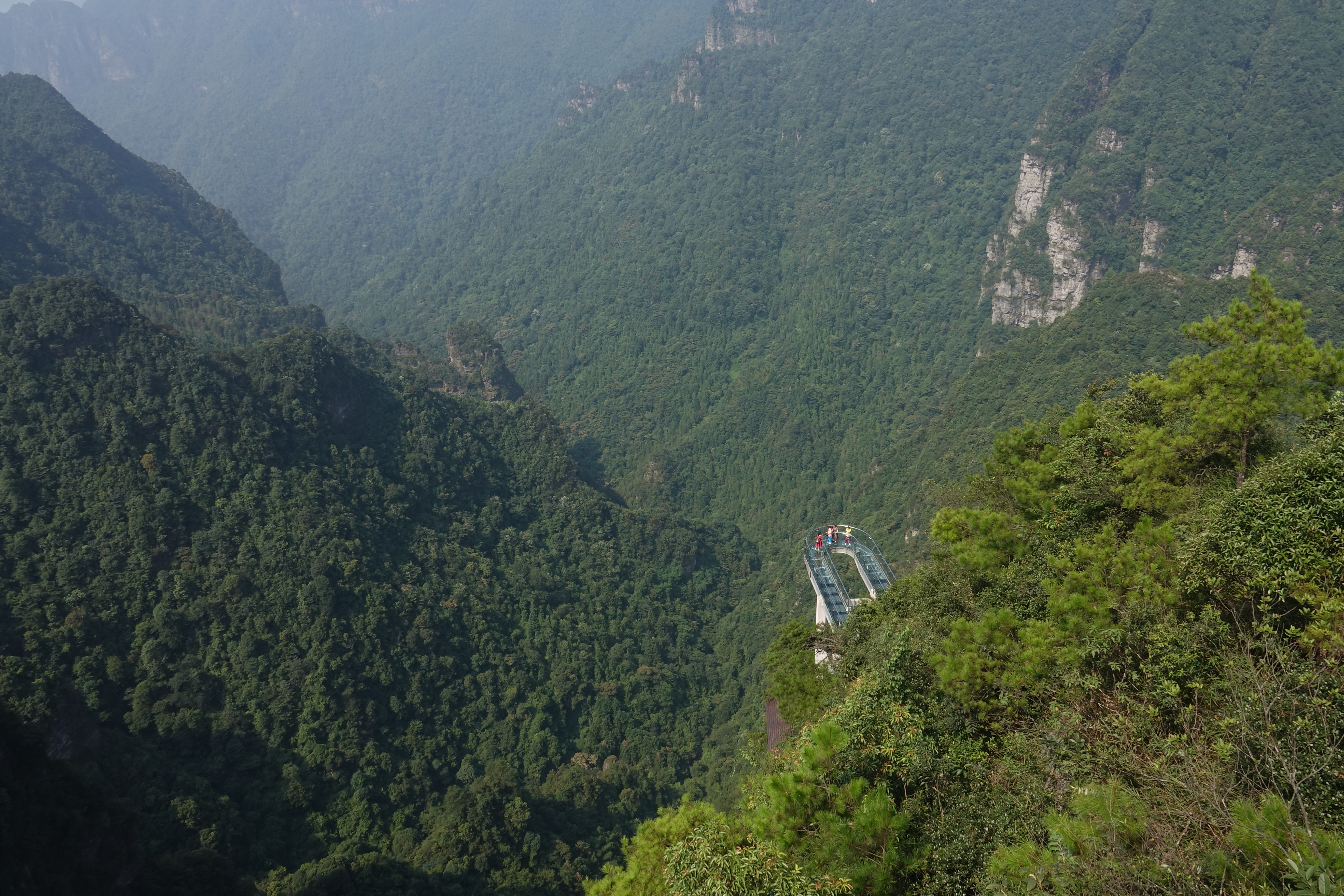 第二天早晨,散步于巴勒山,远眺群山蜿蜒,近看峡谷幽深。石门关玻璃栈道在高山峻岭间,盘山而上,往下看悬崖峭壁,惊心动魄。登上山顶观景天台,体会“一览众山小”,心胸更开阔。