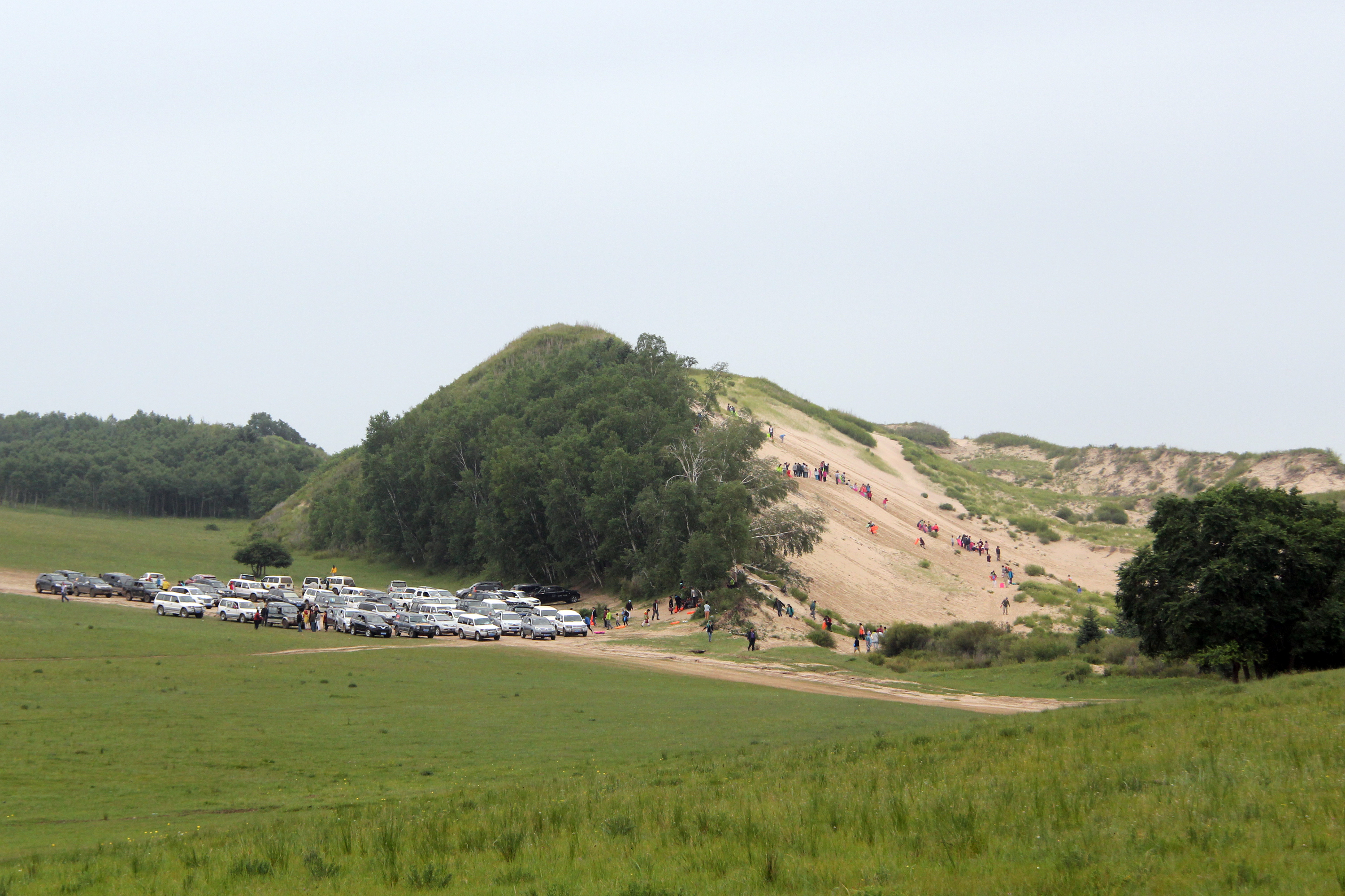 第二天,车子进入内蒙古境内,呈现在眼前的是广阔的大草原,蓝天上朵朵白云婀娜多姿如天仙曼舞,绿野中群群牛羊悠闲自得似闲庭信步,还有远处朵朵白蘑菇似的蒙古包。车子开了差不多一天,日暮时分终于到达红山军马场,在这里体验了一把独具蒙古特色的欢迎仪式:祭敖包、献哈达、饮下马酒!走下大巴车,数名身穿蒙古族服饰的美女上前给每位游客献上洁白的哈达,捧上一碗马奶酒,迎面是一座很大的敖包,叫百草敖包,它是2004年为纪念四十周年而设,百草敖包用石25万块,标志全旗25万人民团结一心。当时请藏传佛教喇嘛为百草敖包开光,每到夏秋之际,百草敖包前香客盈门,香烟袅袅,虔诚之徒络绎不绝。我们绕着百草敖包转三圈,为家人祈求吉祥、平安、幸福……继续驱车不远,抵达入住的度假村酒店。晚餐是在村子里的蒙餐馆吃的,手抓羊肉、草原酸奶味道很不错。夜晚的北方小村庄并没有我们想象当中的萧条,反而是一副热闹的景象,餐馆、超市、大排档完全能够满足您的生活所需。夜空下,我们参加了“游侠客草原之夜”蒙古歌舞晚会,欣赏蒙古族同胞带来的歌舞表演,还跟着领队、蒙古族演员们一起围着篝火跳起舞,嗨翻全场!