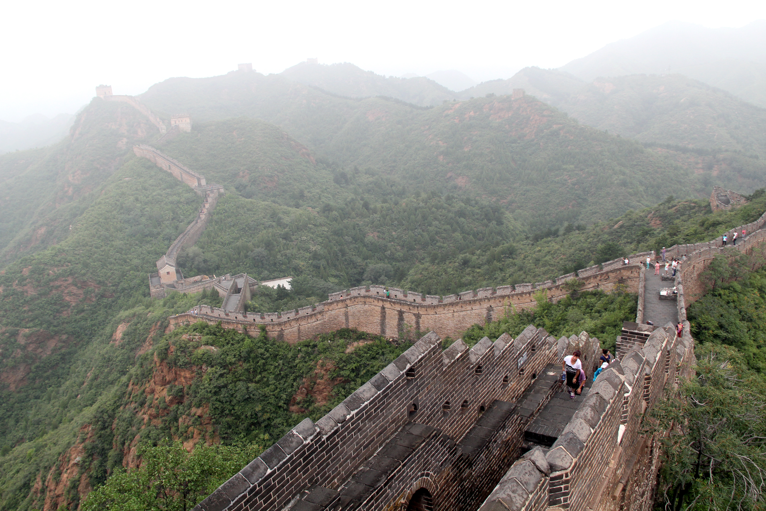 第六天,我们去攀登金山岭长城。中国长城万里,景点众多,有的以雄奇闻名,有的以险峻著称,有的以历史悠久而广为人知,但若论最为秀美,必然是有着“万里长城,金山独秀”的金山岭长城了。金山岭长城号称中国最美长城,不仅是因为它的地势险峻、建造精良,也因为它设计先进,保存完好。这段长城有挡马墙、障墙、文字砖墙、麒麟影壁墙等万里长城中独一无二的地方,当时主持建造这段长城的将领是明朝著名的爱国将领、抗倭明将戚继光,它倾注了十六年的心血方才在此筑起了这座闻名海内外的中国最美长城。虽然现在是盛夏,但这里却到处郁郁葱葱、枝繁叶茂、云雾缭绕,让人心境舒畅。最奇怪的是和八达岭长城人头挤挤、寸步难行的热闹相比,这里却是游客稀少,有时拍出来的照片甚至一个背影都没有。而且这里的长城保持得很好,范围也很长,甚至还可以看到一段未经修复的原始长城,可以拍到大量残垣断壁,充满沧桑的长城,如果到这里拍婚纱、拍写真、搞艺术创作,绝对是极好的选择。金山岭长城全长十余公里,真要全部走完,估计一天都不够,我们因为下午要赶回北京坐火车,所以只能参观一小段的长城,希望下次还有机会过来再次领略最美长城的风采!