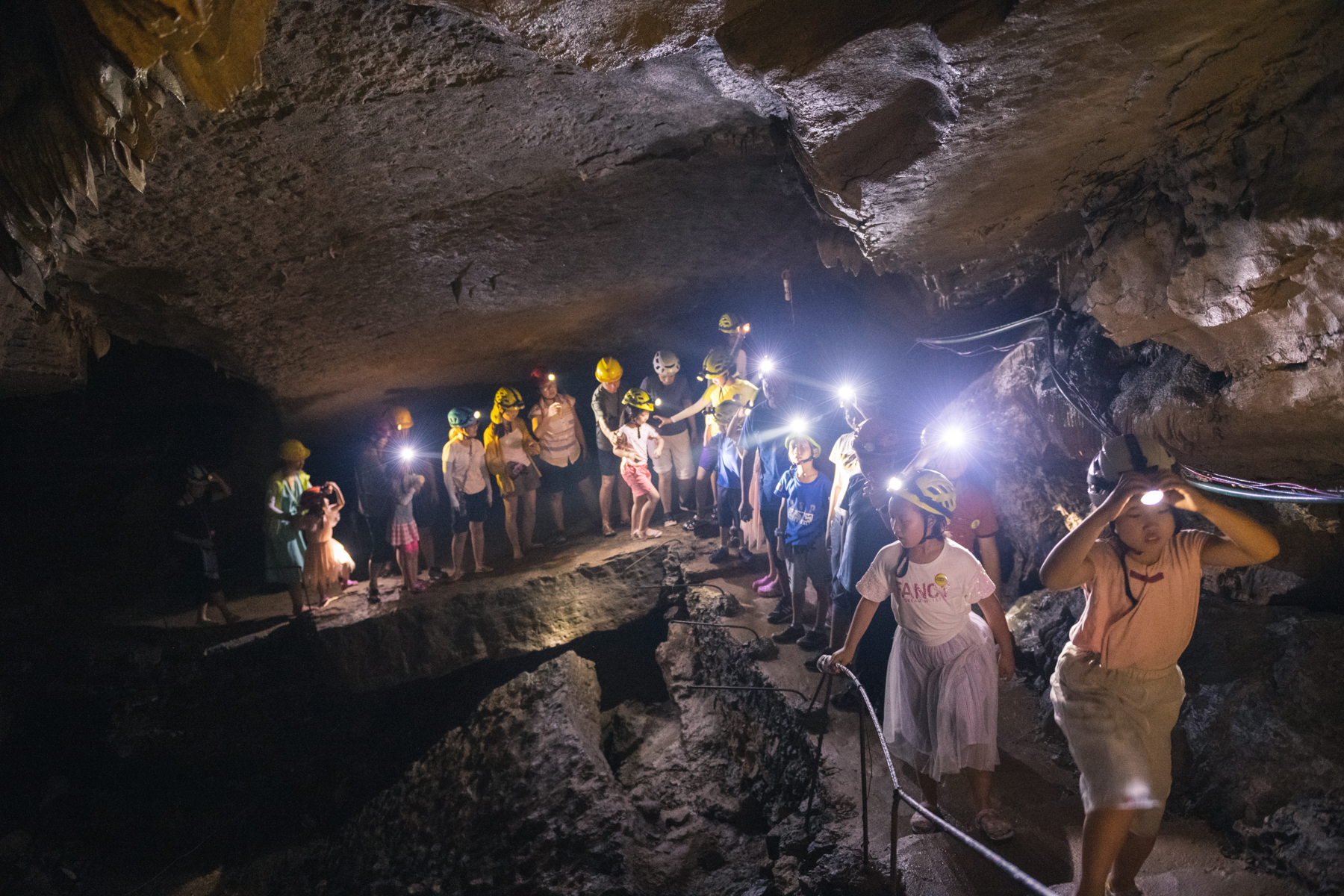 进入溶洞前必须乘坐小船到达洞穴内部,注意记得穿凉鞋,因为肯定要湿脚。
