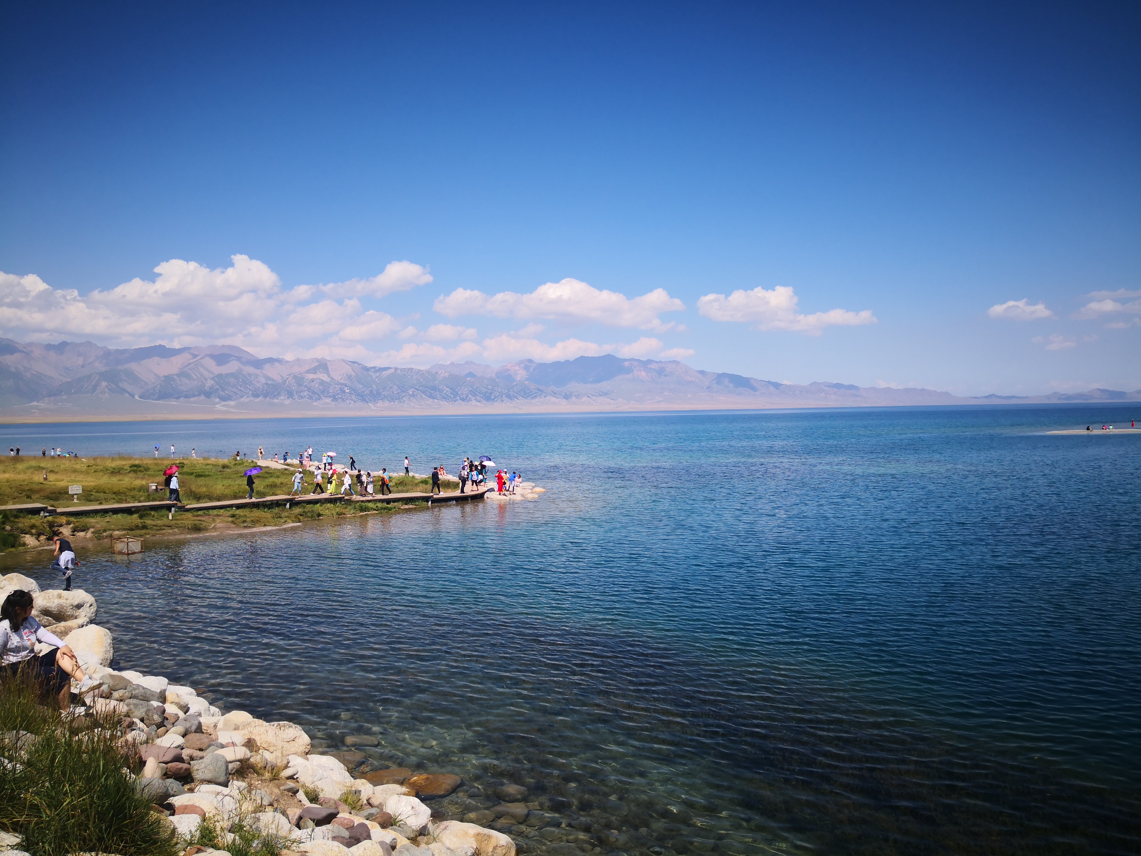 据说赛湖只有进水口,没有出水口。整个湖面呈蔚蓝色,与湛蓝的天空融为一体,但湖水在近出水口的地方颜色会更深一些,所以湖水在不同的地方颜色会略有不同。