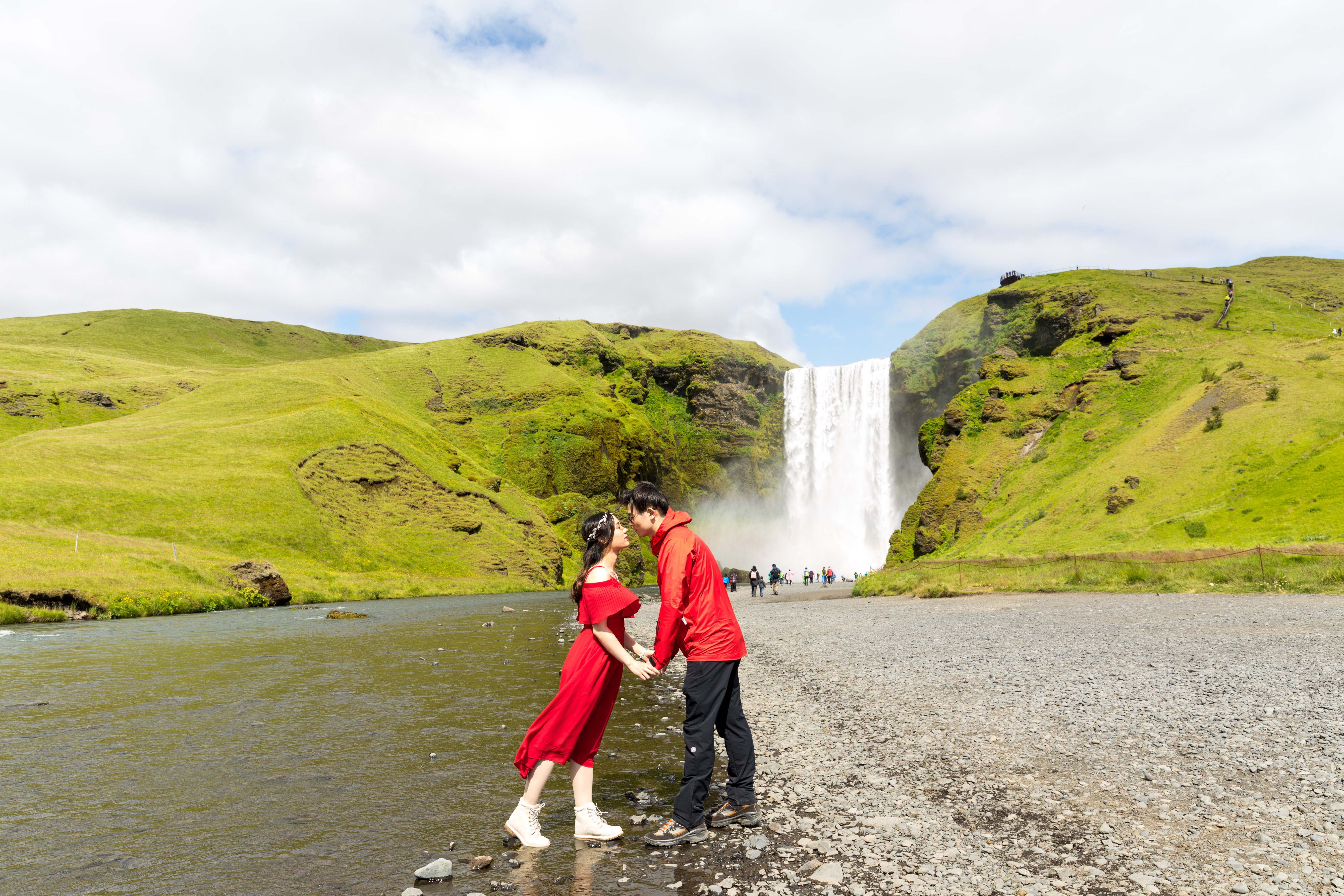 斯科加的落差很大,水面也宽阔,是我们所见过最壮观的瀑布,但他有个小脾气,离太近时可能会遭遇暴击哦。是否全身而退,全靠运气,哦不,靠风向…当你走近他,而刚好风朝着你吹时,你就要小心了,斯科加会给你一个大大的拥抱,不要落荒而逃,因为往往这个时候,你也正站在彩虹里!他的别名是彩虹瀑布,在我到达的此刻,平均不到十分钟就有一次看到彩虹的机会,甚至能够幸运地看到双彩虹!水汽消散得快,彩虹们也不会停留太久,请用你灵敏的眼神去捕捉和欣赏吧!