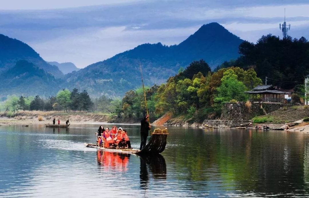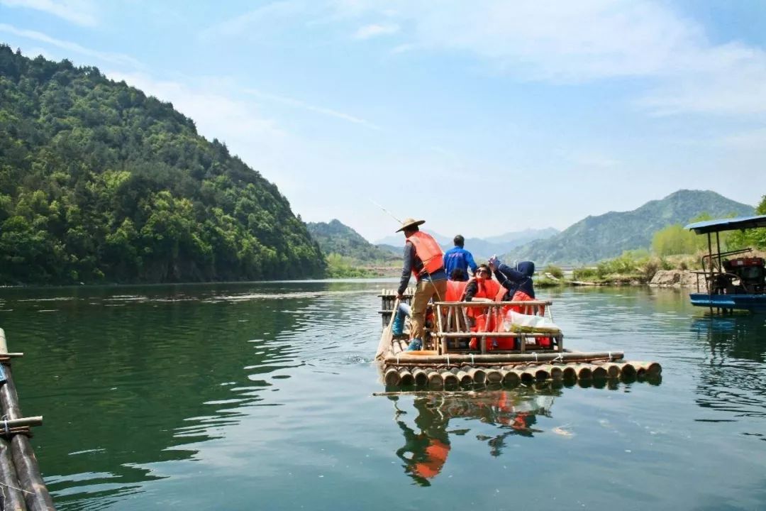 当然,桐庐这里也有轻松休闲的竹筏漂流——天目溪漂流,这里是分水江的支流,很长一段在山谷间曲折蜿蜒,溪流平坦,清澈见底。