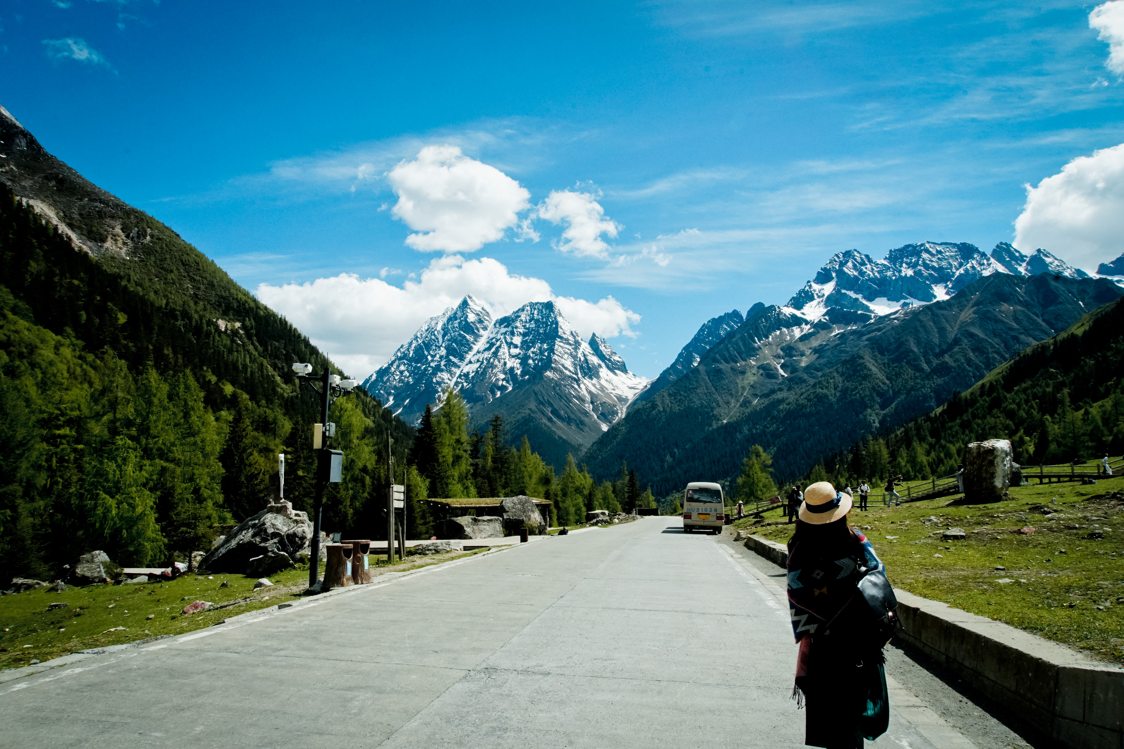 氧气越发的稀薄,天空也越发的蓝,只是从成都出发的时候还是穿着短袖,到了这里也要默然添衣了,这是一种高原特有的凛冽,直击身心。偶尔下车休憩的时候,站在层峦叠嶂里,便不由自主卸下在都市里紧绷着的神经,放轻松,有一种置身于大自然里的惬意,也有一种位于瑞士的错觉。