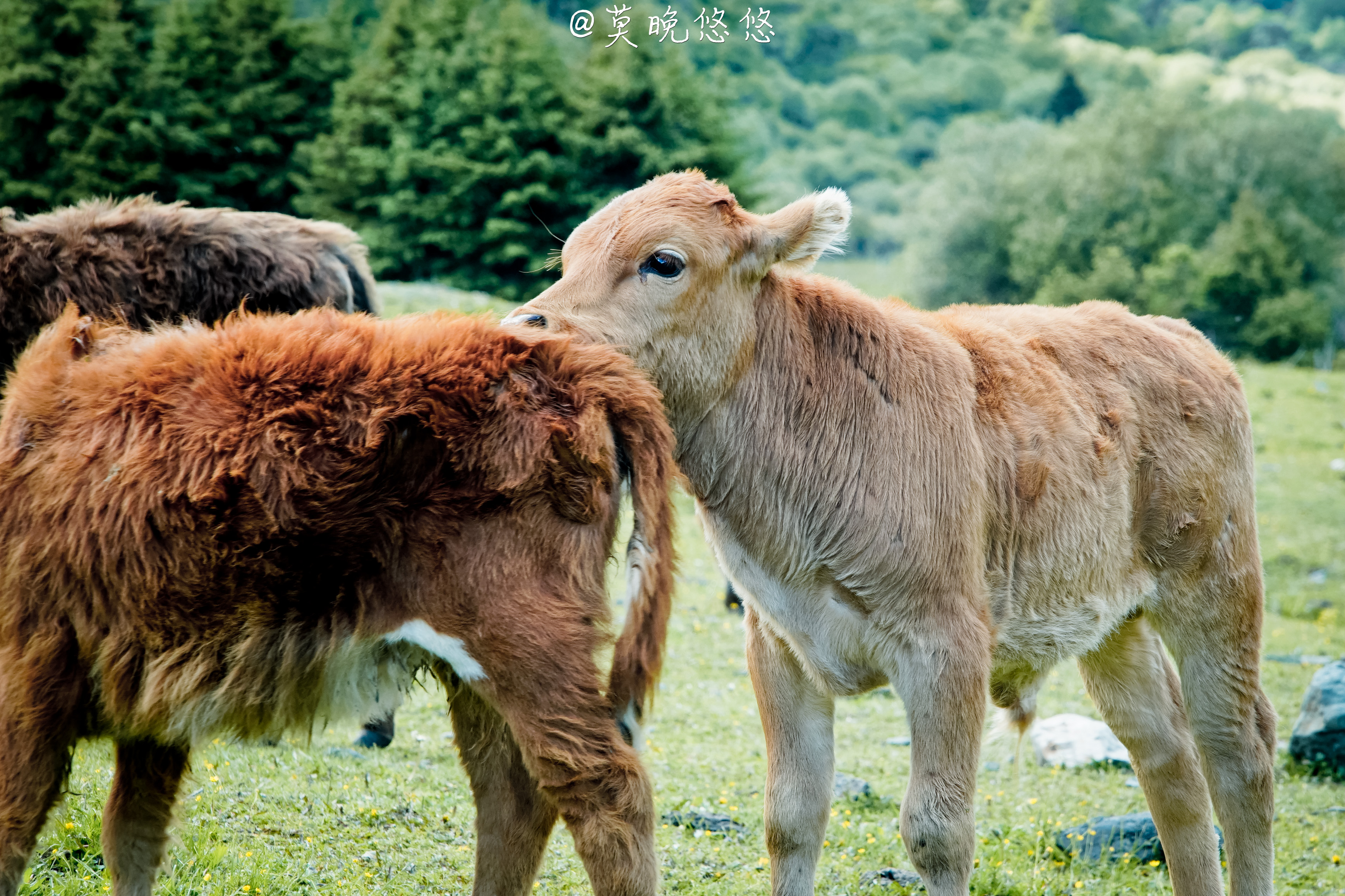 现在就是好多的牛羊在这里悠然地吃着草,一起嬉闹玩乐着~
