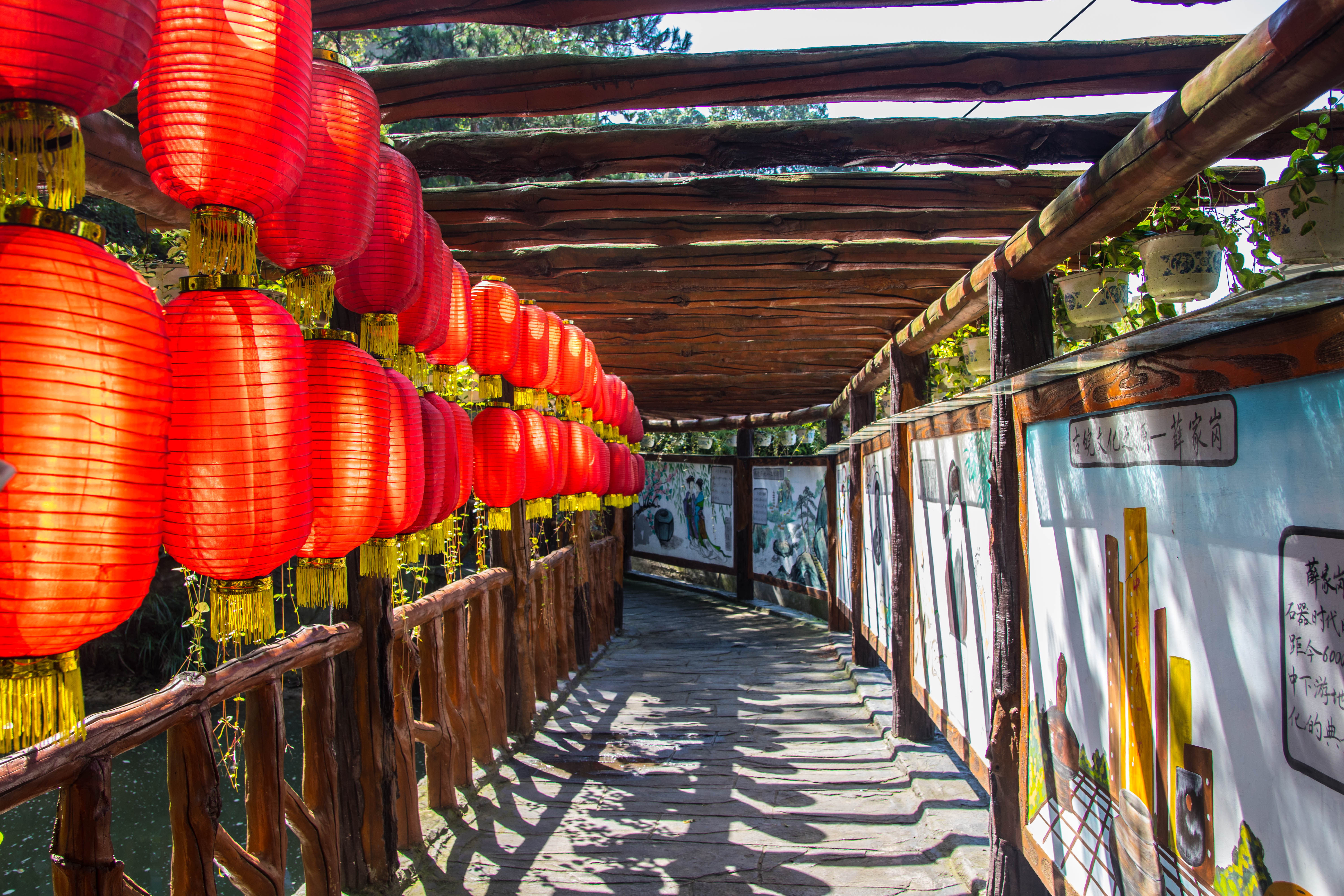 孔雀东南飞景区其实是一个小型影视城,汉代风代,当年为拍《卓文君与司马相如》而建,景区有一些汉代建筑和庭院花园,最里面是一个跑马场式的古战场。