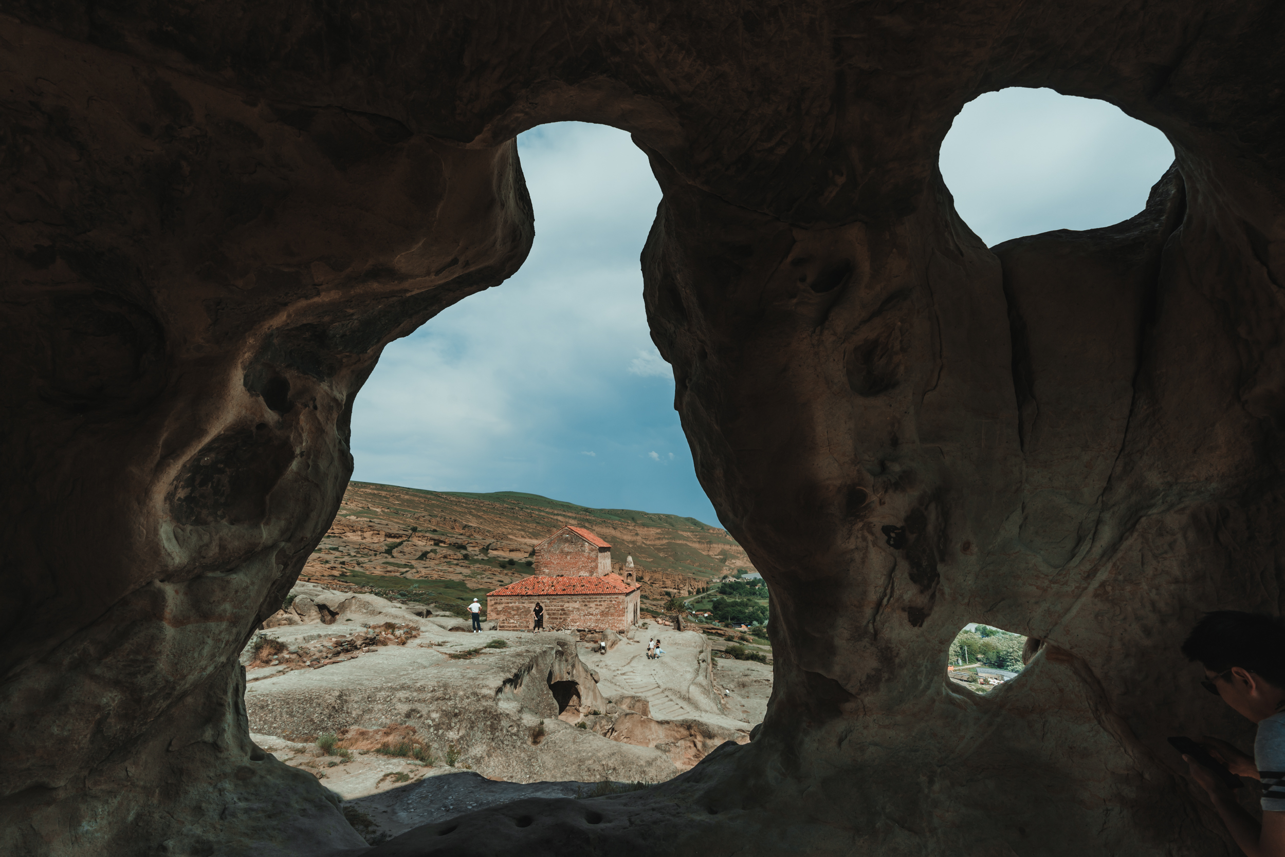 整个修道开凿在一个丘陵之侧,正对着丹霞地貌最雄伟的地方,红褐色的岩土蜿蜒数十公里,层层叠叠展现在隐修士面前。这个修道院从公元六世纪开始,就逐步有修士在此开凿洞窟,逐步扩展到整个山体,整个山体中不下几百个洞窟,颇有点 土耳其 卡帕多奇亚 洞窟教堂的感觉。在这天高草原阔的美景之下修行是一种怎么样的体验??