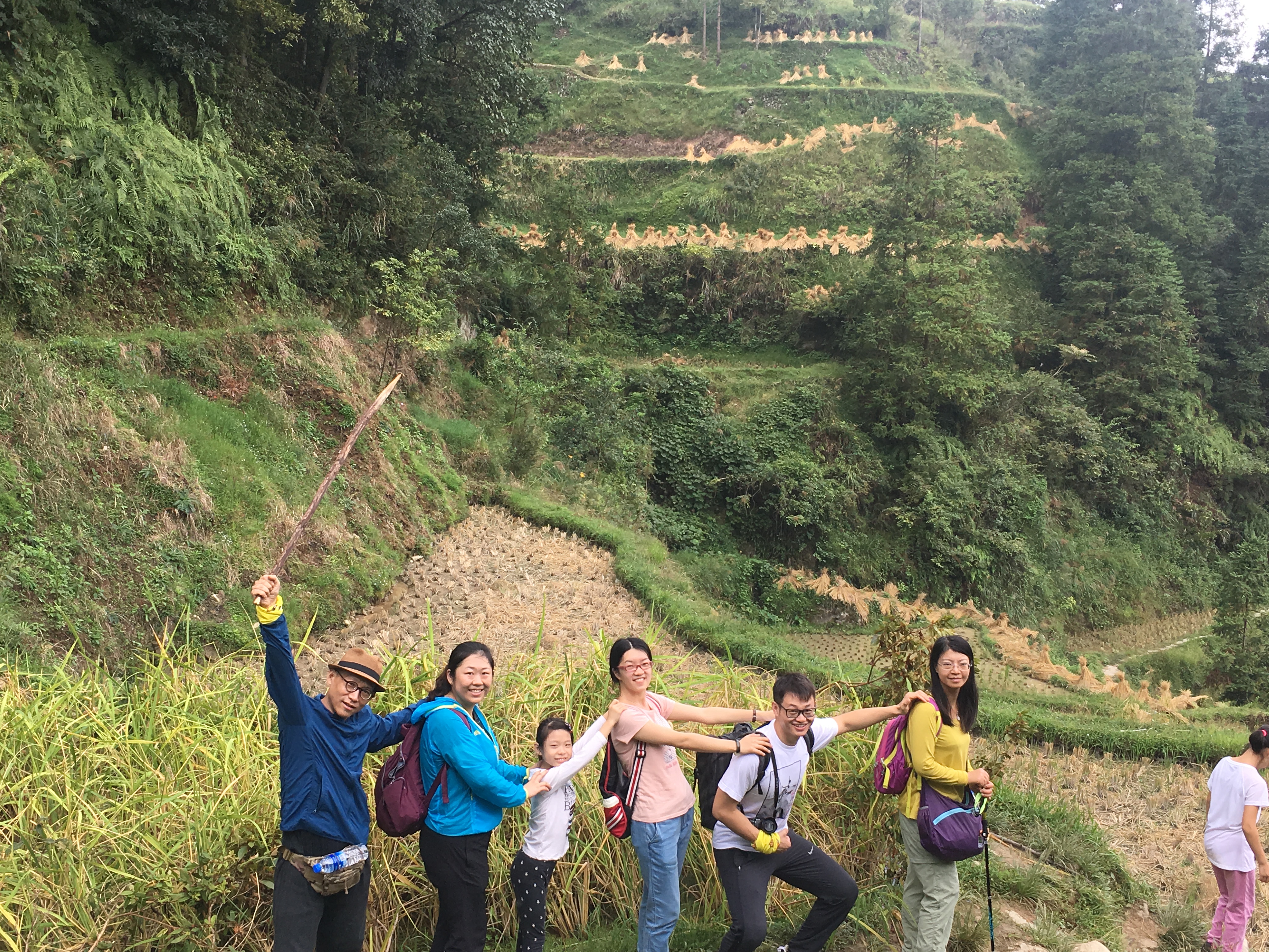 一大早我们一起出发去徒步堂安古道。这是黔东南最美的古道。一路上我们看到了古老的村落和层层叠叠的梯田,虽然我们去的时间已经没有了稻谷,但还是能闻到稻草的清香。路上我们还发现了稻田里的荷花鱼。一路上我们携手同行,一起唱歌、拍照。我们一行人最多年龄72,最小的才6岁,我们在欢声笑语里结束了2个半小时徒步。