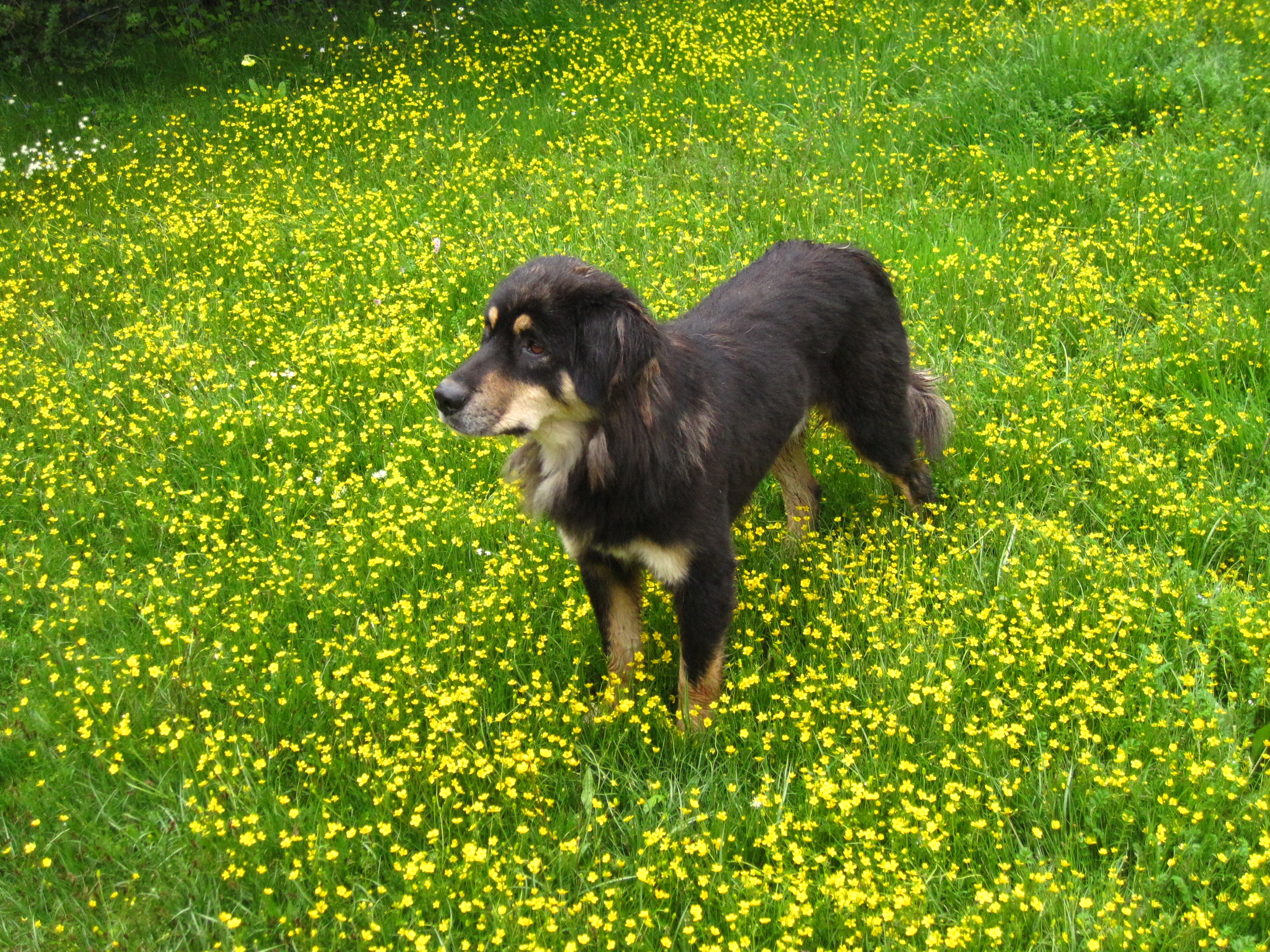 一路上,遇见他的藏民都说这是他家的狗狗。但是他们却喊不动他。于是,五郎就这样跟着我下山了,一路上都特别乖。在我们即将返回稻城的时候,他也没有离开。于是,我们决定把他带回客栈。到了客栈,老板没法领养他,而我也即将出发去西藏,没法带上他。后来是一位隔天要返回康定的司机看上了五郎,带他回家了。