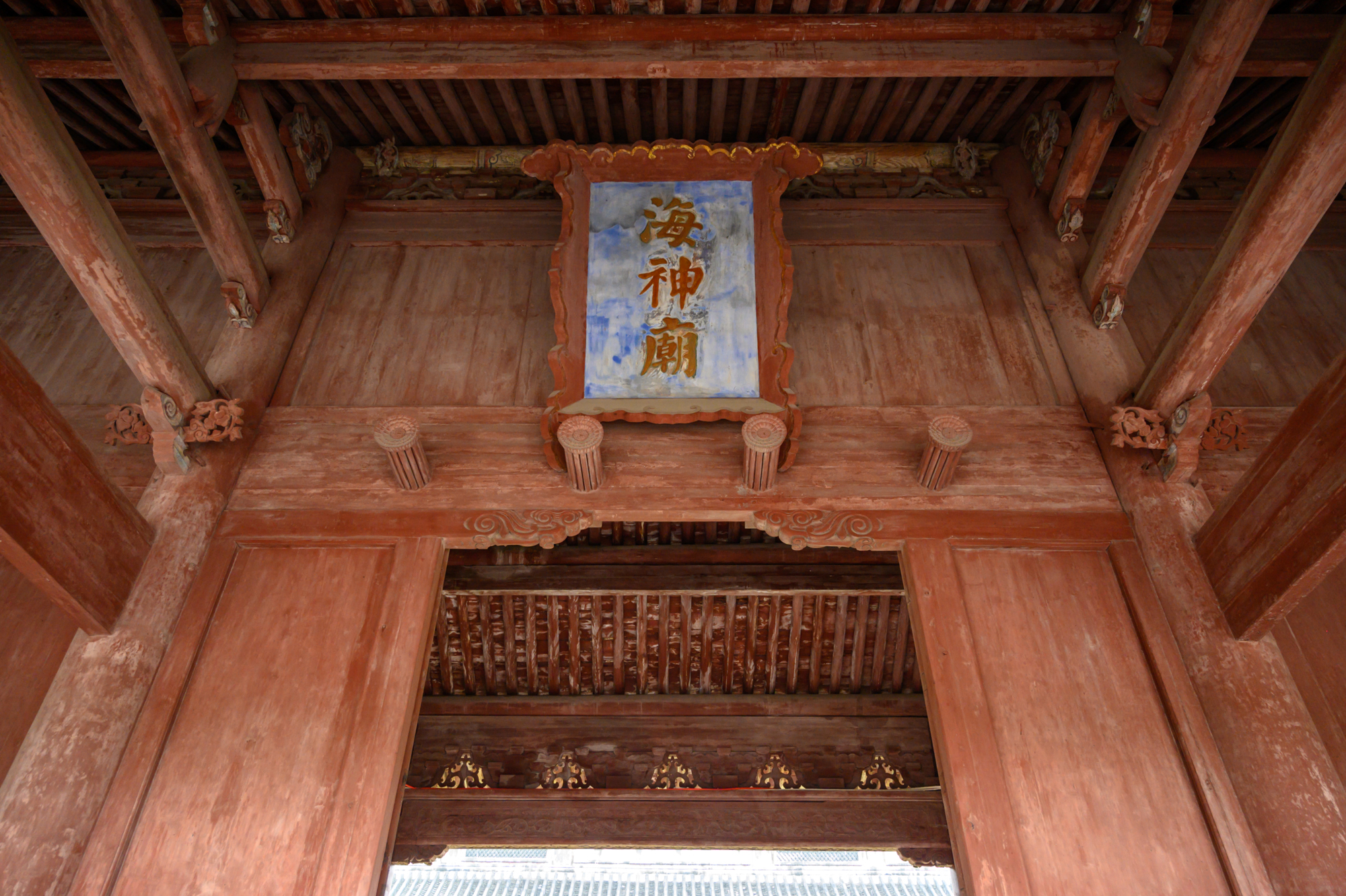在正殿的门匾之上悬挂有“澄澜保障”四个金色大字,“澄澜保障”为乾隆二十七年御赐的牌匾,乾隆曾六下江南四次来到海宁,而每一次都会来到海神庙,御赐这块牌匾也是希望可以将浑浊的钱塘江水治理清澈。