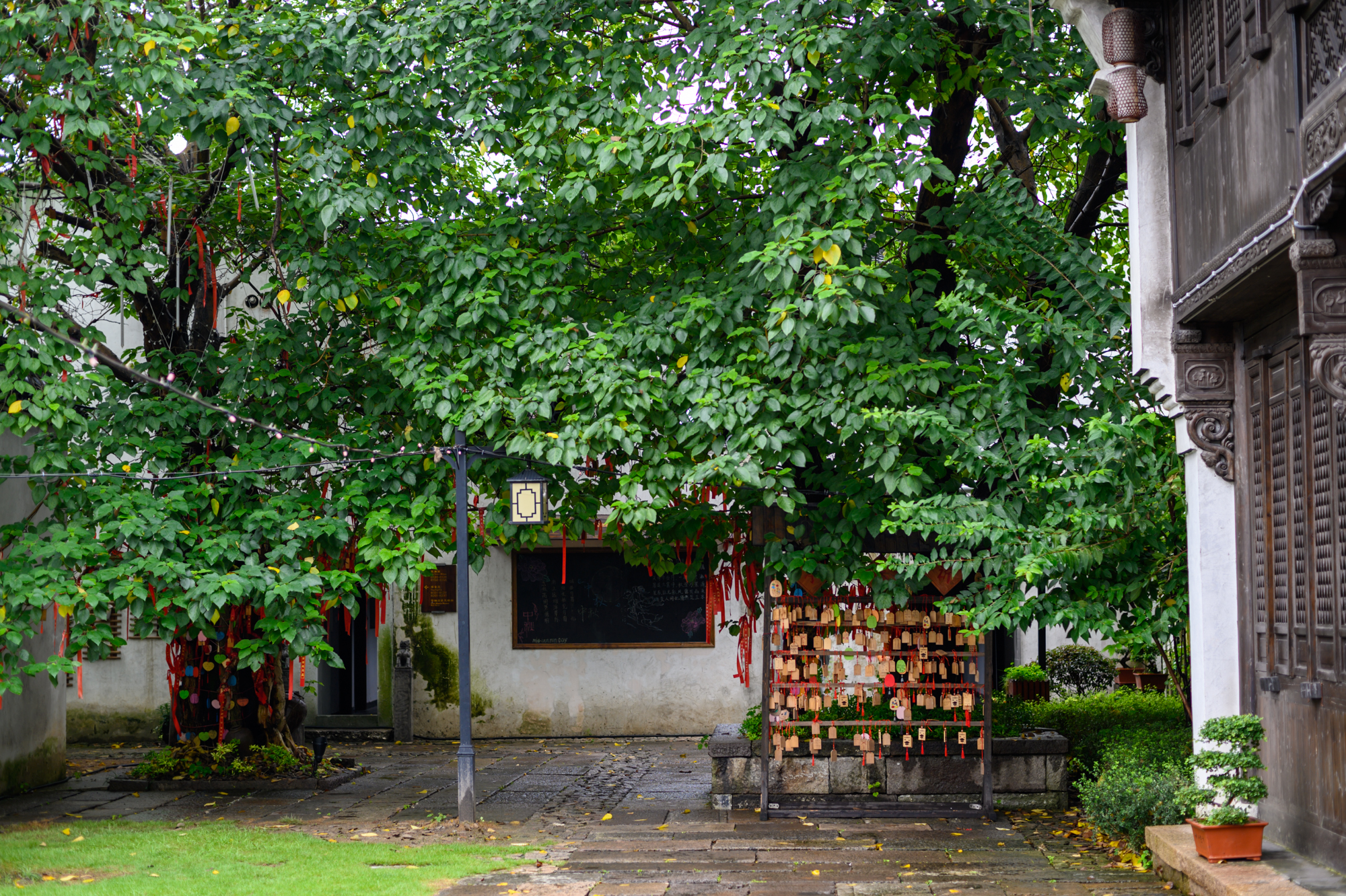 去往房间的路上故意拐进了其中一个类似于四合院的院落,砖木结构的房屋看起来格外的舒服,特别是在刚下过小雨后,增添了一份别致的美。