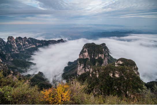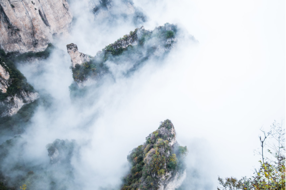 不登王莽岭,岂识太行山!因巨大的海拔落差,山下山上温差大,王莽岭一年有三分之一的时间都会出现云海,云海爬上山头,在山峰峡谷间奔腾缭绕,有时如大江奔涌,有时如九天瀑布,有时如千顷平湖,有时如大海波涛。云海此起彼伏,山峰忽隐忽现,每次都各具特色,其壮阔之势不逊黄山!